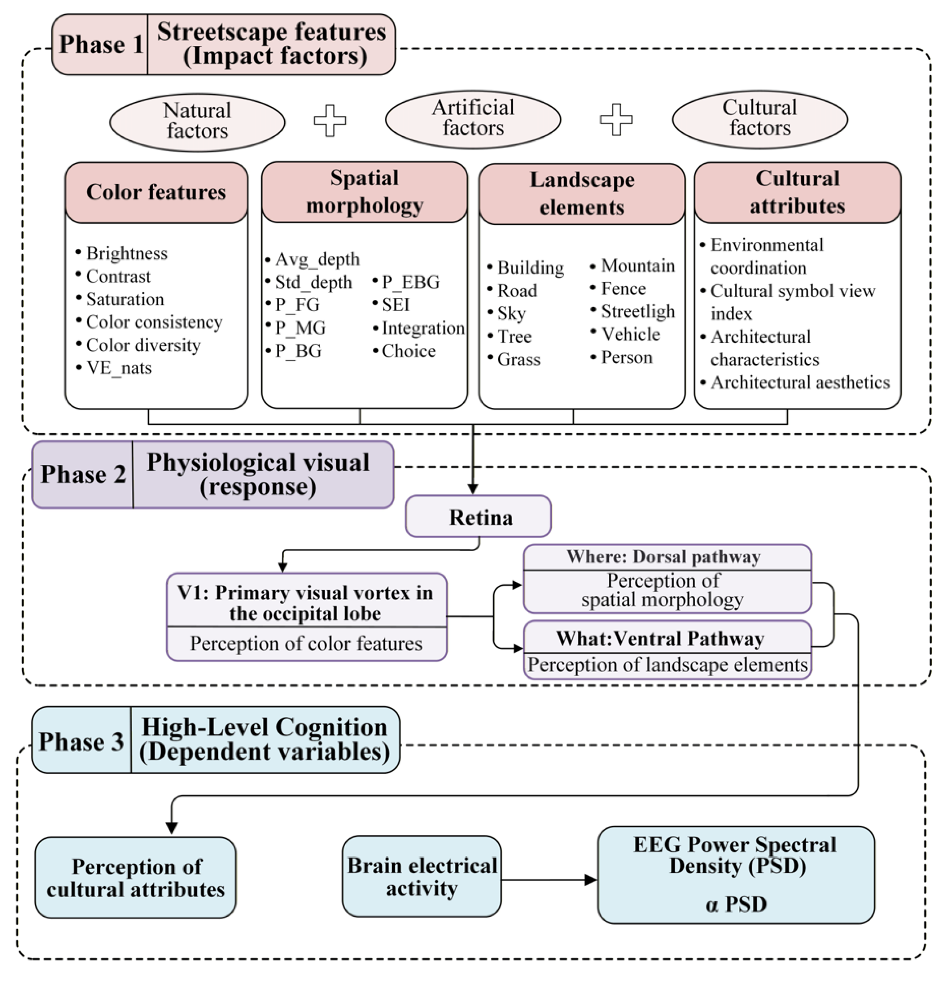 | Frontal Lobe/Prefrontal Cortex | An advanced cognitive region involved in decision-making, aesthetic evaluation, cultural judgment, and perceptual formation. | A key brain region involved in the cognition of cultural attributes—such as architectural aesthetics and environmental harmony—and in the generation of streetscape perception. |