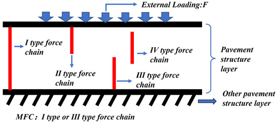 Among these, Type I and Type III force chains are defined as the main force chains (MFCs), as they effectively transfer external loads to lower pavement layers.