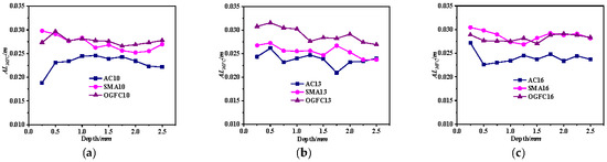 Asphalt mixture average MFCDADD. (a) NMAS-9.5 mm. (b) NMAS-13.2 mm. (c) NMAS-16 mm.