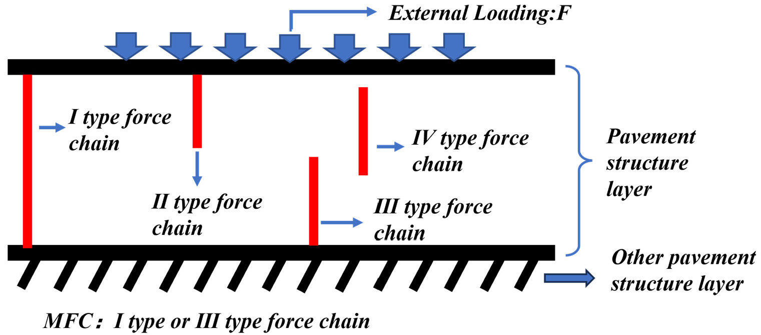 - The load is directly applied from the upper pavement layer, and this type of force chain transfers external loading to other structural layers.