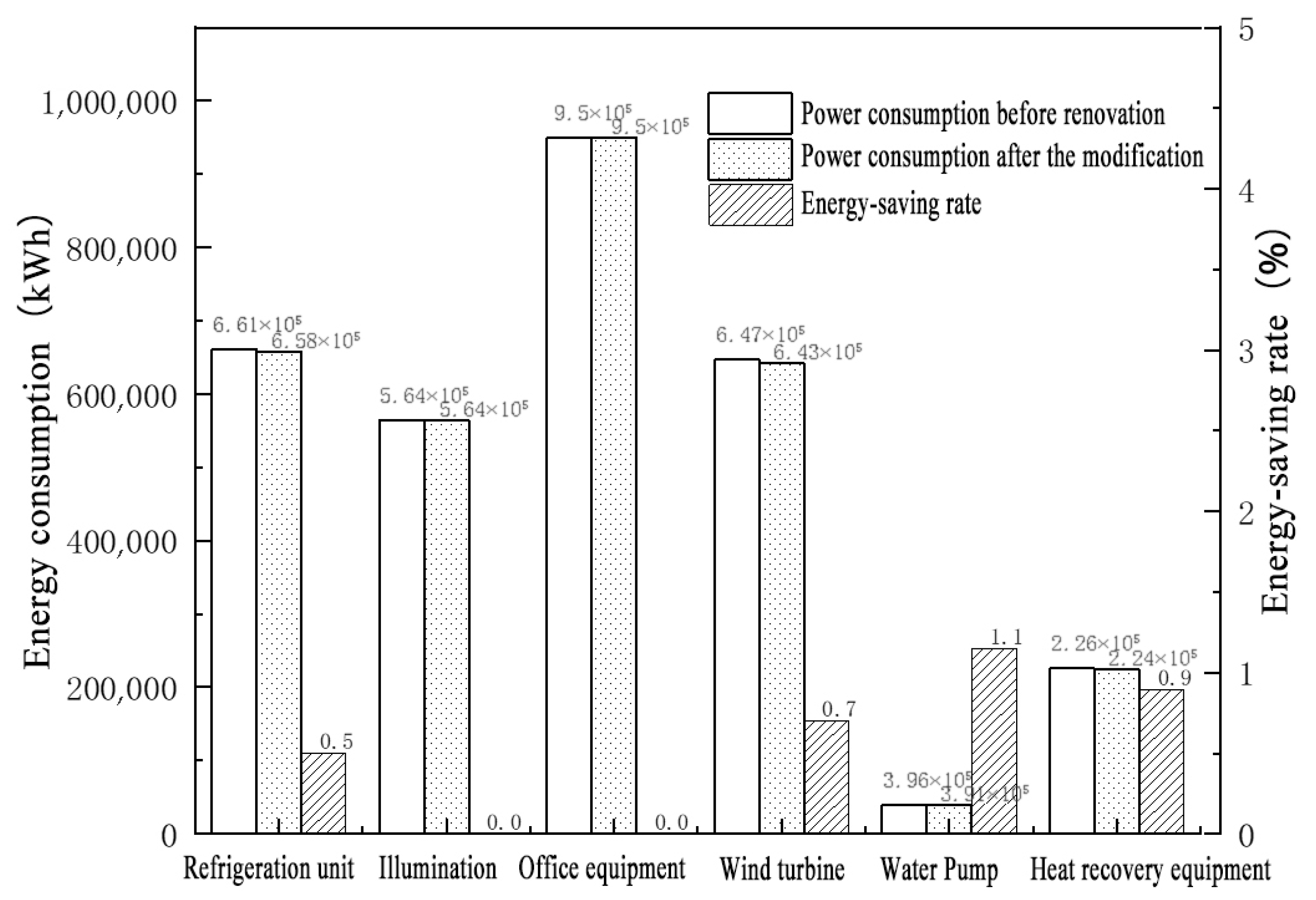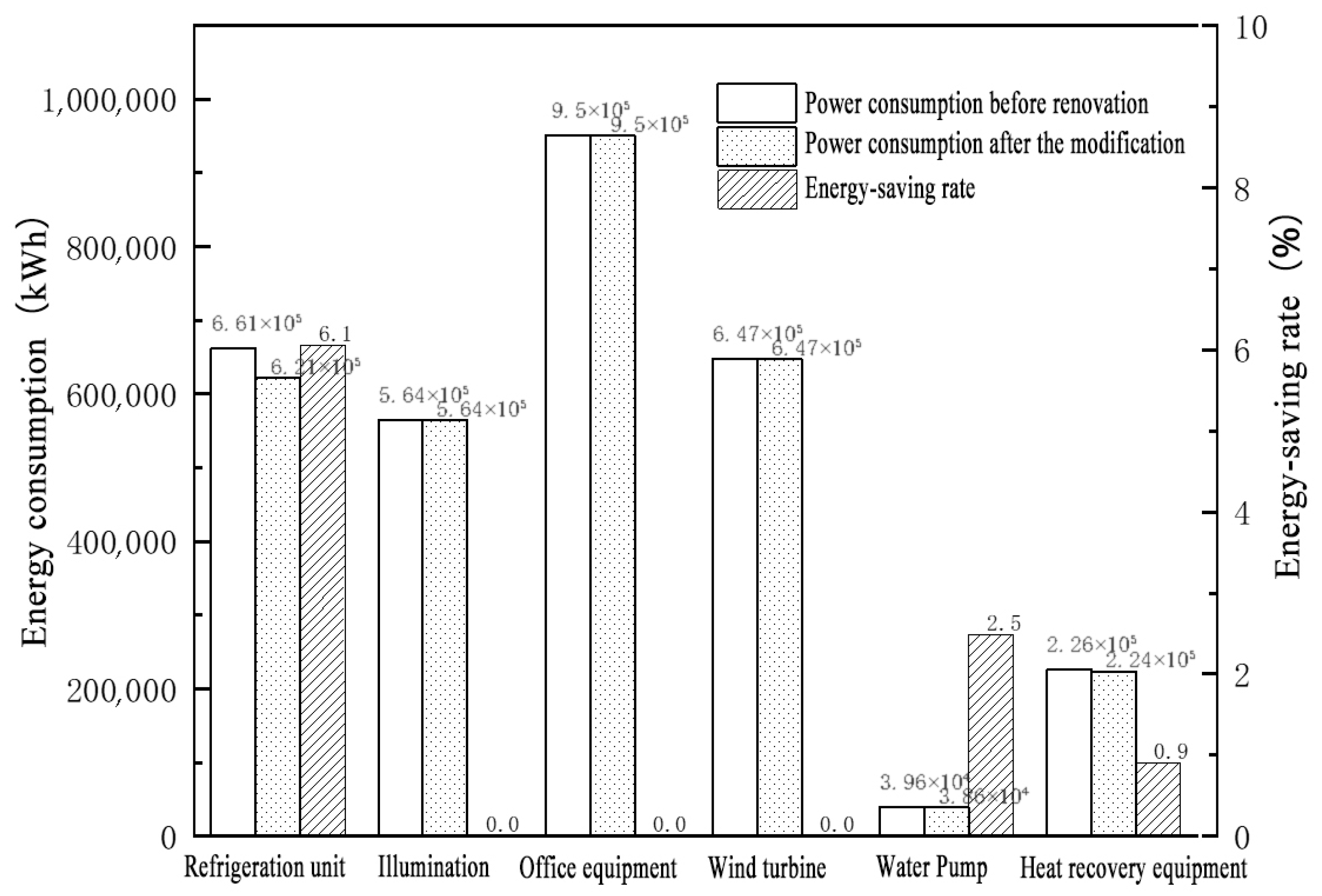 Figure 10, the renovation achieved a 6.1% energy-saving effect on the refrigeration units.