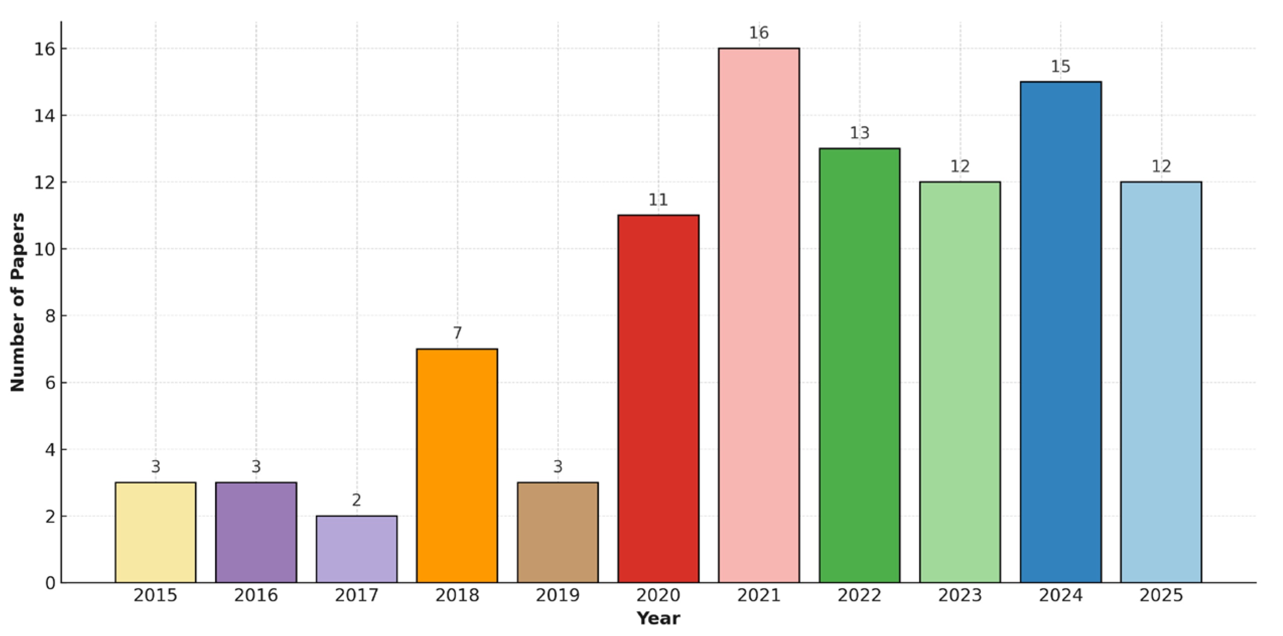 Figure 3. Year-wise distribution of retrofitting studies (2015–2025).