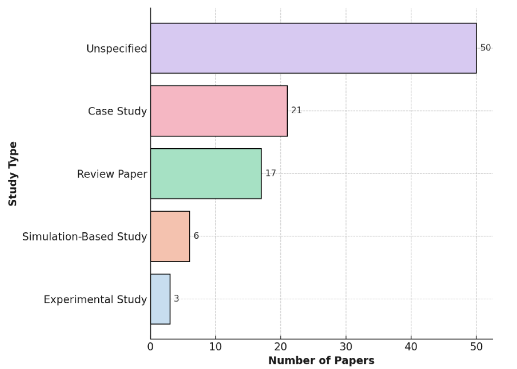 To ensure consistency in coding, papers were classified based on whether the research design was explicitly stated in the methodology section or could be inferred from the analysis approach. Studies were labelled “unspecified” only when no clear indication of method was provided. Cross-referencing with building types (Section 3.1.5) shows that housing retrofit studies most frequently adopt case-study methodologies due to occupant-centred evaluation needs, whereas simulation-based approaches are more common in public and mixed-use buildings where performance optimisation and operational considerations are prioritised. This indicates that methodological choice is shaped not only by research purpose but also by building function and data accessibility.