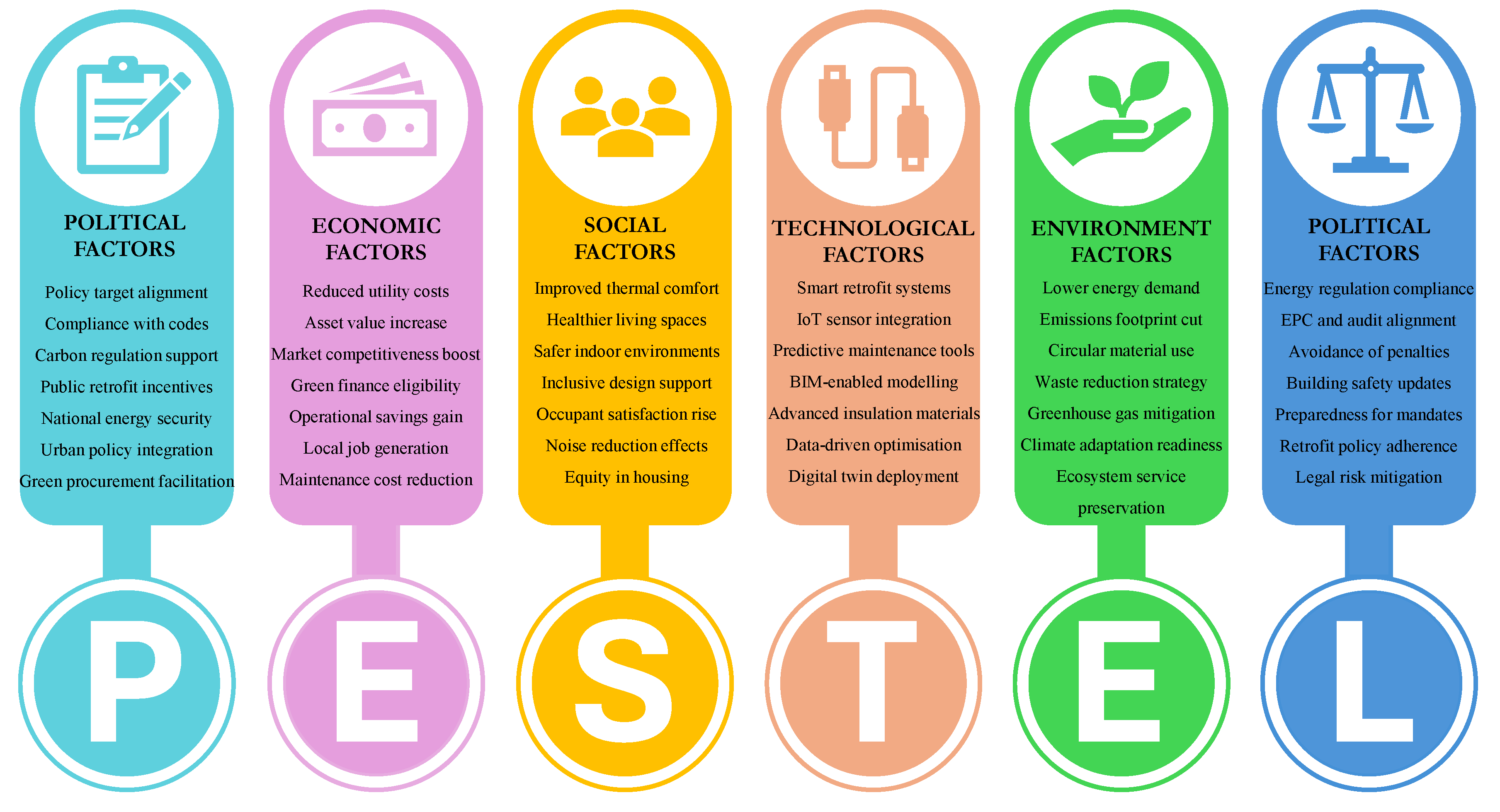 Figure 12. Benefits of retrofitting categorised by the PESTEL framework.