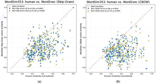 These diagnostics confirm that both corpora and all models behaved as expected during training. The data preserved natural lexical structure, and the models converged stably, ensuring that subsequent evaluation results are based on well-formed and properly trained embeddings.
