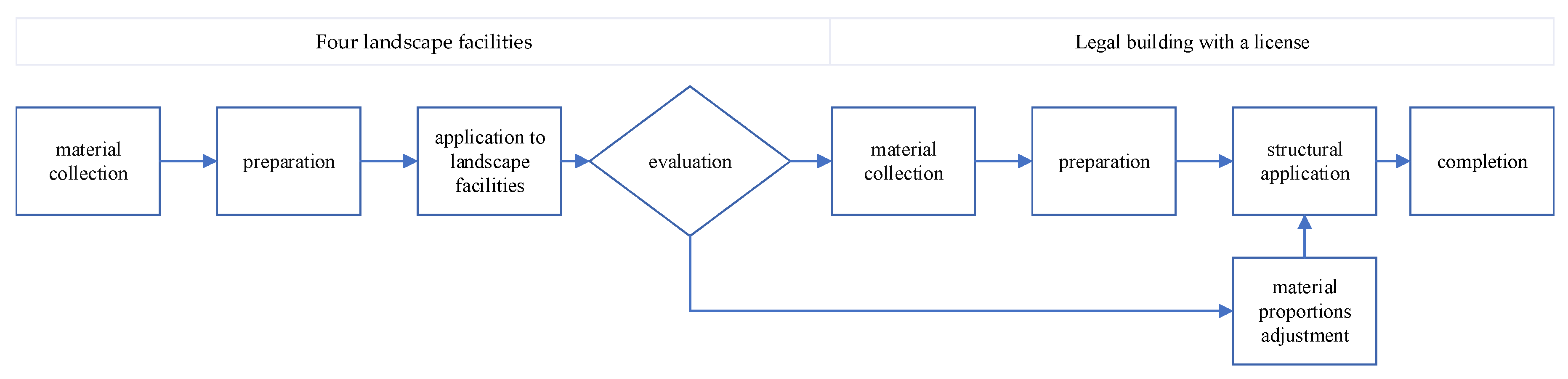 - Tsai, S.-C.; Zhang, X.-F.; Chang, Y.-T. Toward Nearly Zero-Waste Architecture: Innovation, Application, and Practice of Construction Methods Using Natural Materials. Buildings 2024, 14, 1584. [Google Scholar] [CrossRef]