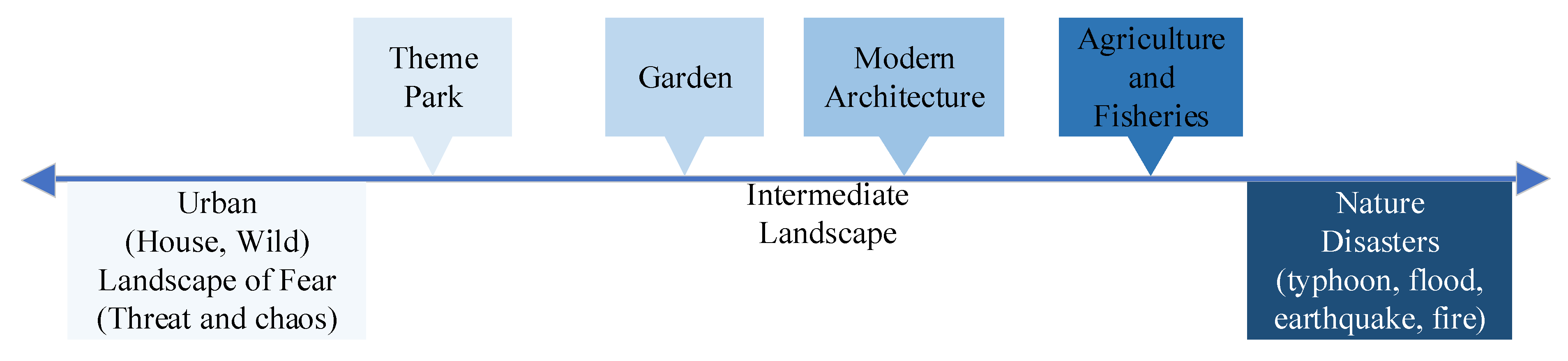 - Tuan, Y.-F. Landcsape of Fear; National Compilation and New Century Publishing Co., Ltd.: Taipei, Taiwan, 2008. [Google Scholar]