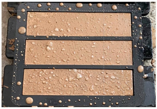 For specimen preparation, P, B, FA, and SF were weighed per the prescribed proportions and dry-mixed. Then water was added and stirred. MgO was subsequently introduced, and the mixture was high-speed-mixed for 90 s. The slurry was cast into 40 mm × 40 mm × 160 mm molds (Figure 1), compacted on a vibration table for 60 s, cured in air, and demolded. The flowability of the freshly mixed MPC paste, measured according to GB/T 8077-2023 [], was 205 ± 2 mm.