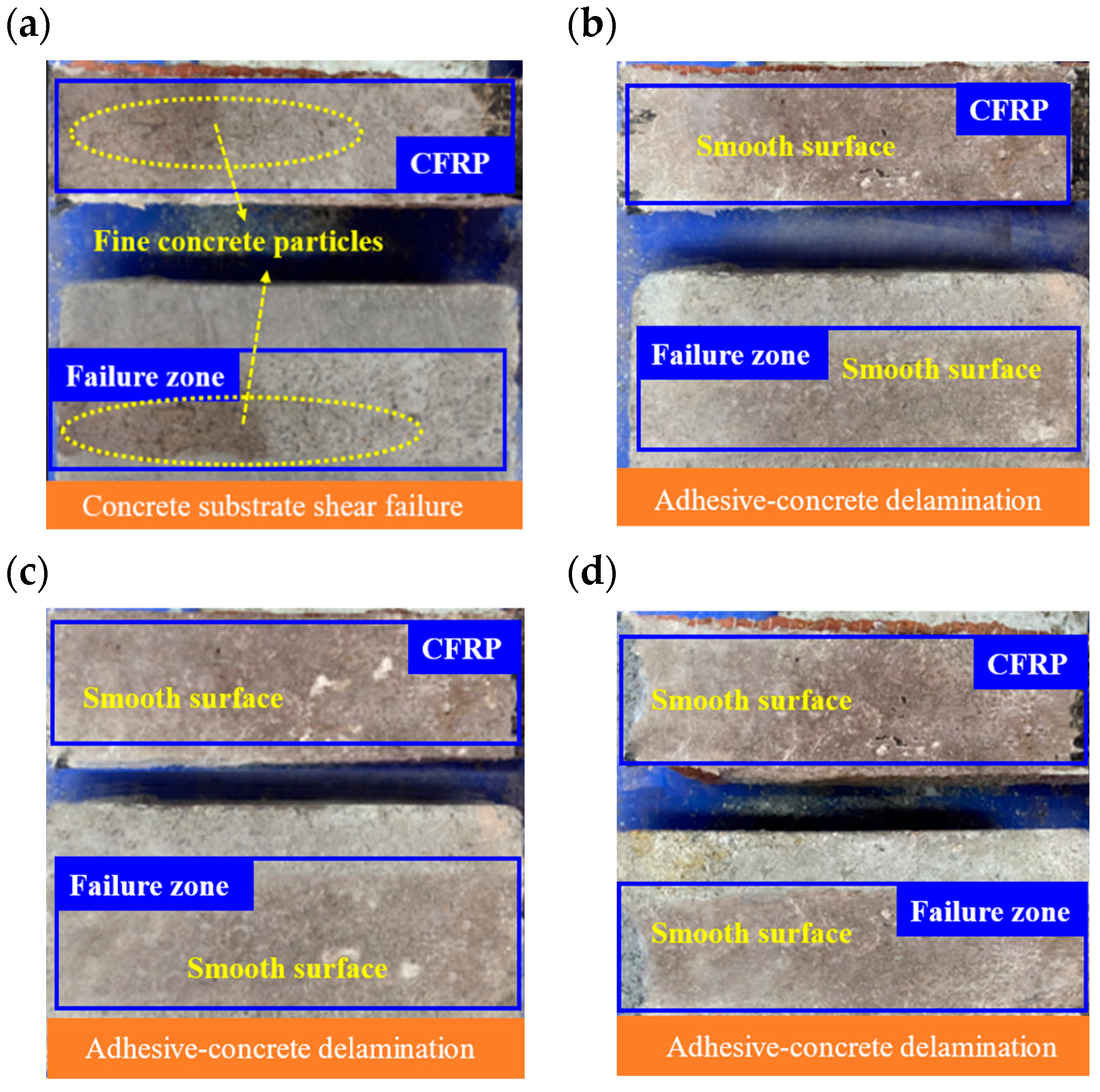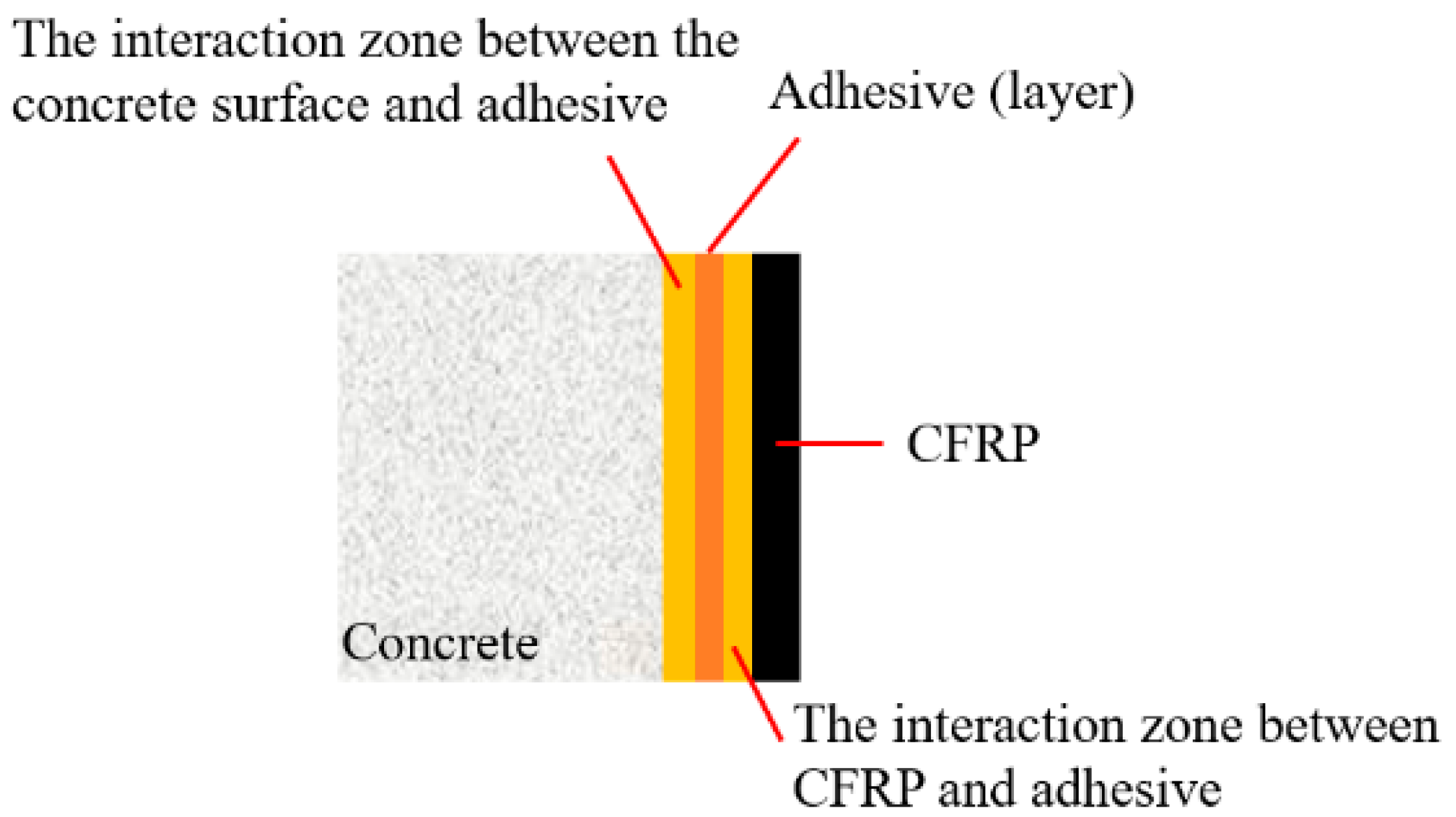- Xiong, H.X.; Zhang, Q.; Guo, S.H. Adhesive thickness effect upon the CFRP plate–concrete interface bond behaviours. Eng. Res. Express 2025, 7, 015101. [Google Scholar] [CrossRef]
