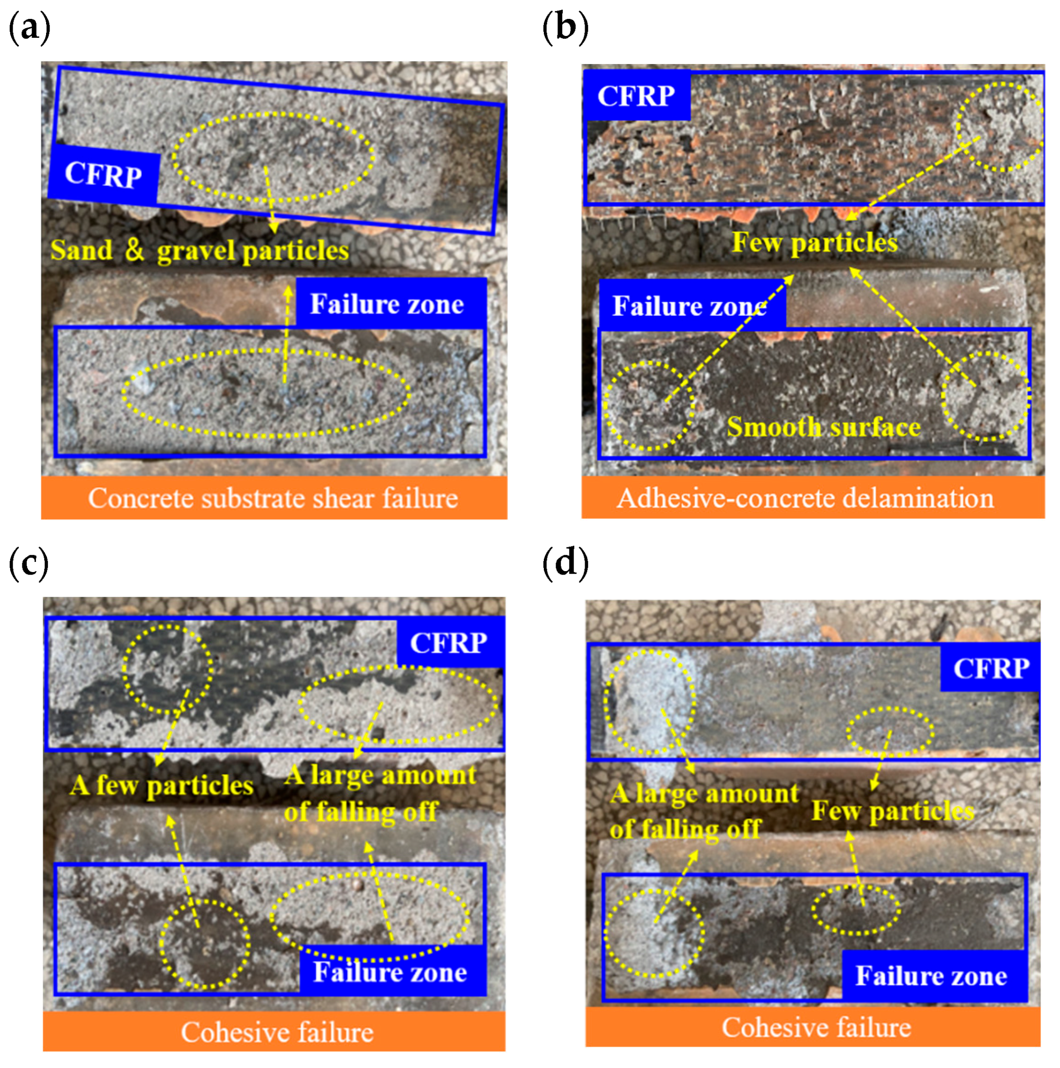 - Feng, X.Z.; Ren, J.G.; Liu, Q.L. Tailoring magnesium potassium phosphate cement-based adhesive for the improved bonding performance of CFRP/concrete interface. Constr. Build. Mater. 2024, 453, 139121. [Google Scholar] [CrossRef]