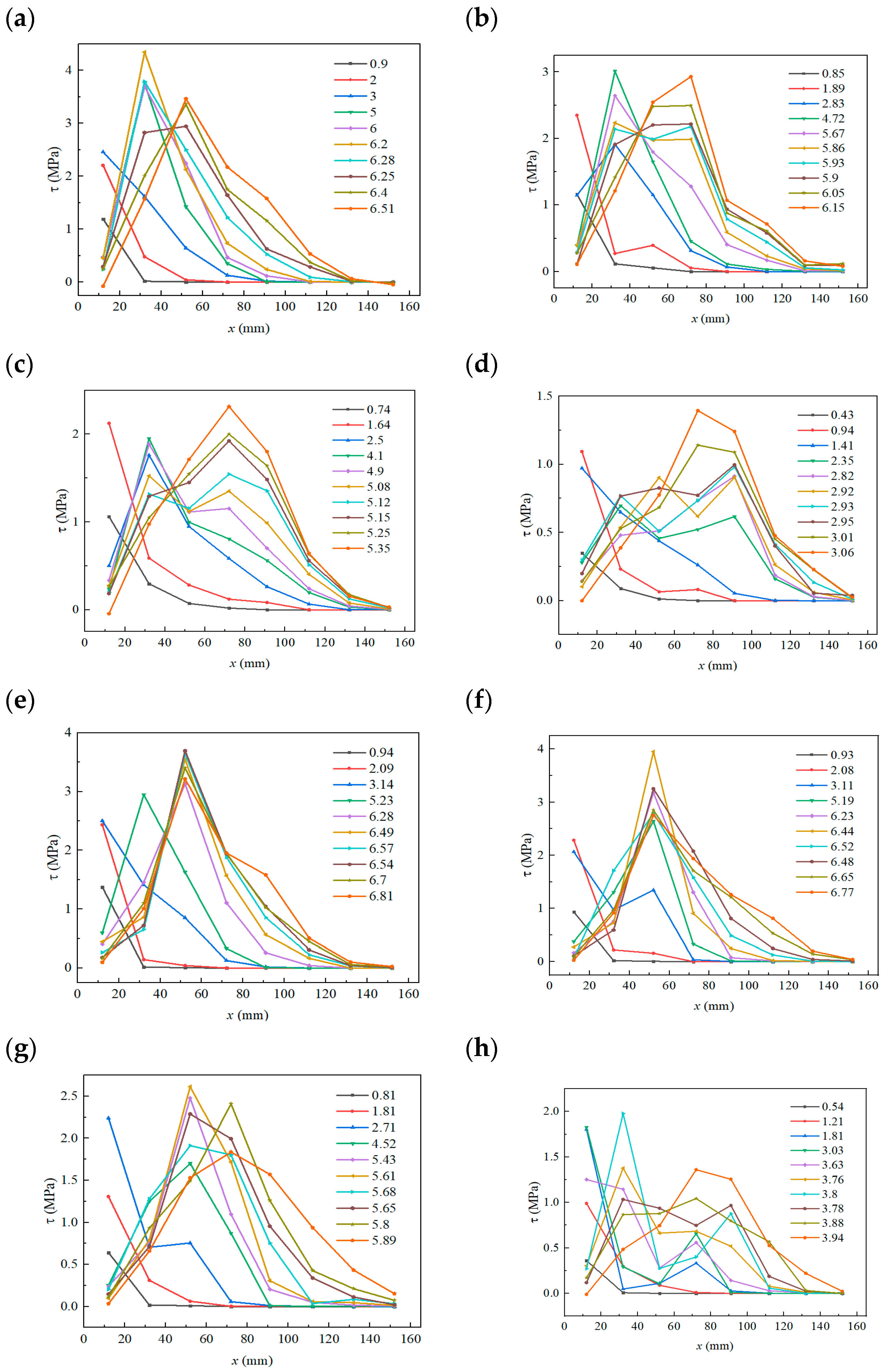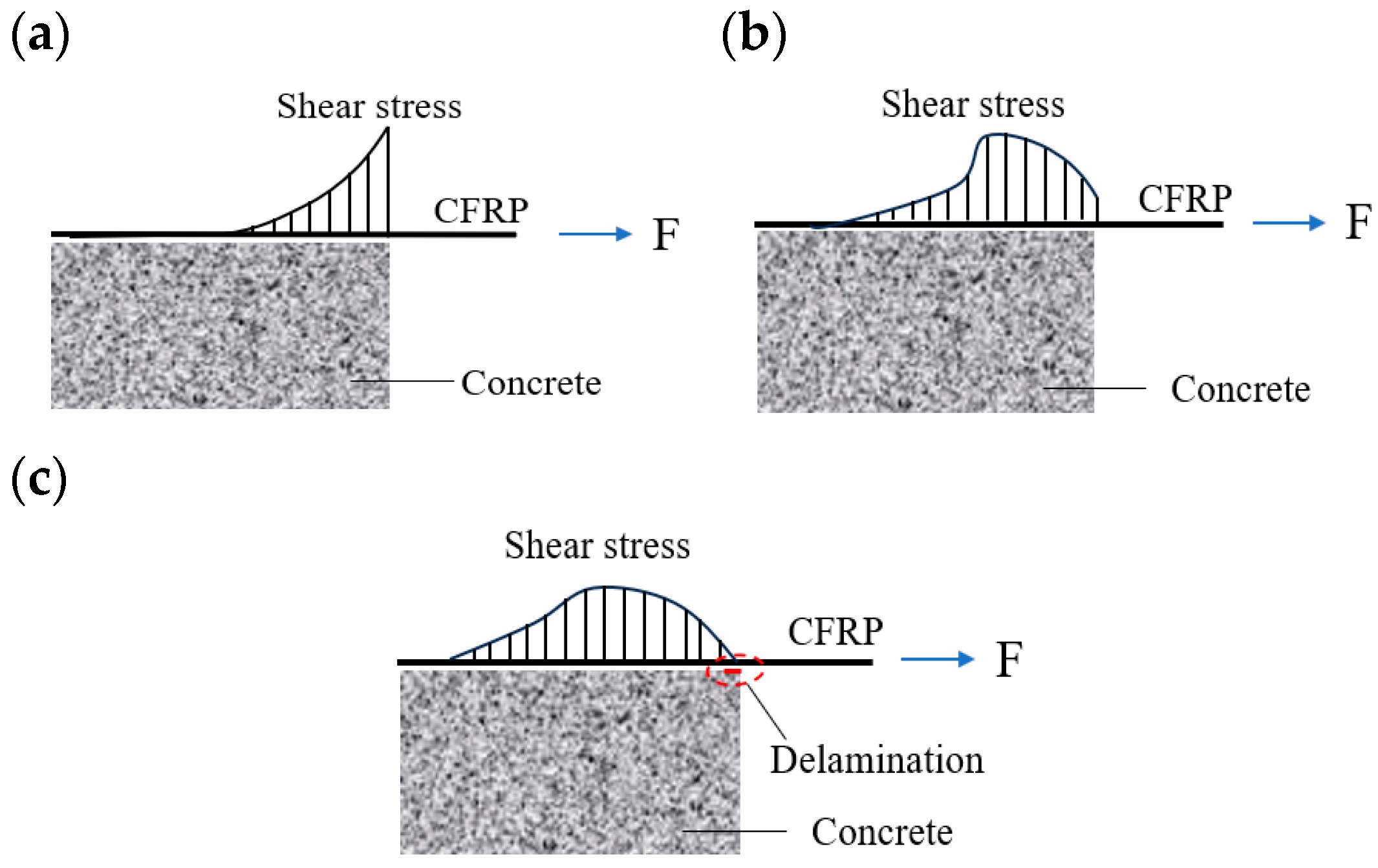 - Yuan, H.; Teng, J.G.; Seracino, R. Full–range behavior of FRP–to–concrete bonded joints. Eng. Struct. 2004, 26, 553–565. [Google Scholar] [CrossRef]