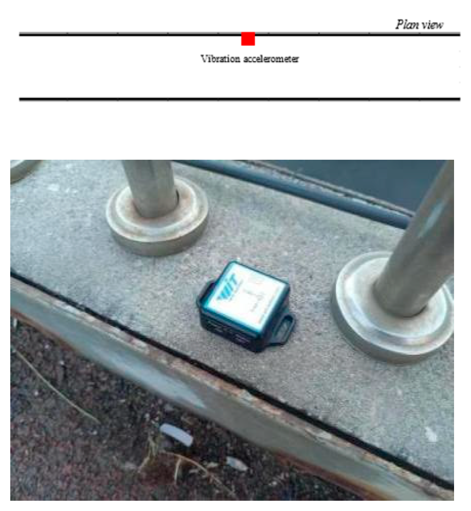 The interpretation of the results would be strengthened by a formal assessment against established vibration serviceability criteria. Although the natural frequencies of the bridge (0.68 Hz and 1.12 Hz) were identified, a detailed evaluation of the potential resonance risk with the harmonic components of pedestrian walking forces was not fully conducted.
