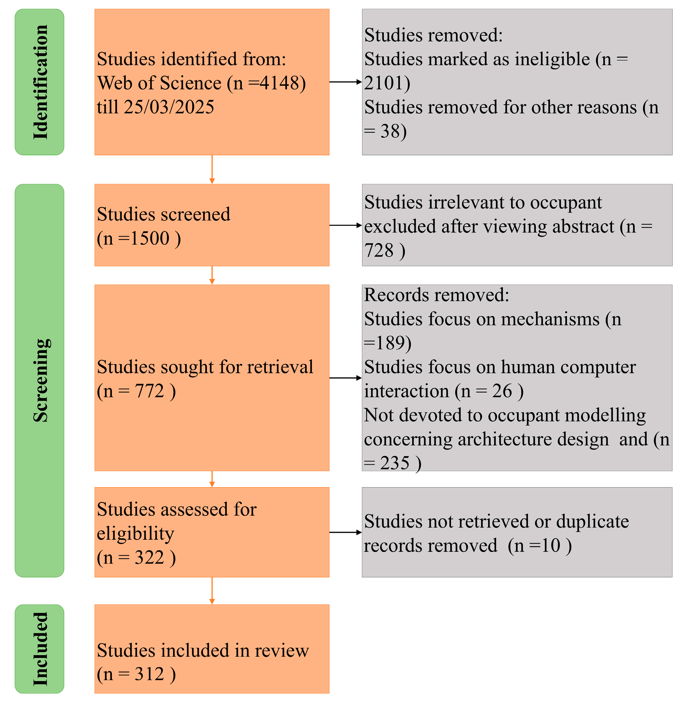 - Occupant modeling research has exhibited clear geographical and typological patterns. Most studies originate from technologically advanced regions such as North America, Western Europe, and East Asia. Regulatory pressures, digital infrastructure, and academic networks in these regions support occupant-centric innovation. Research has shifted from focusing on thermal comfort and adaptive behavior in office/residential environments to capturing dynamic behavior in mixed-use buildings. The rise in the Internet of Things (IoT), Agent-Based Modeling, and digital twin has reinforced this shift, enabling real-time data-driven applications in sensor-rich urban environments. Occupant modeling approaches are evolving from single, deterministic models to adaptive hybrid models fusing data-driven, agent-based simulation, stochasticity and physical principles, with the core driver being balancing computational complexity with human-centric design.