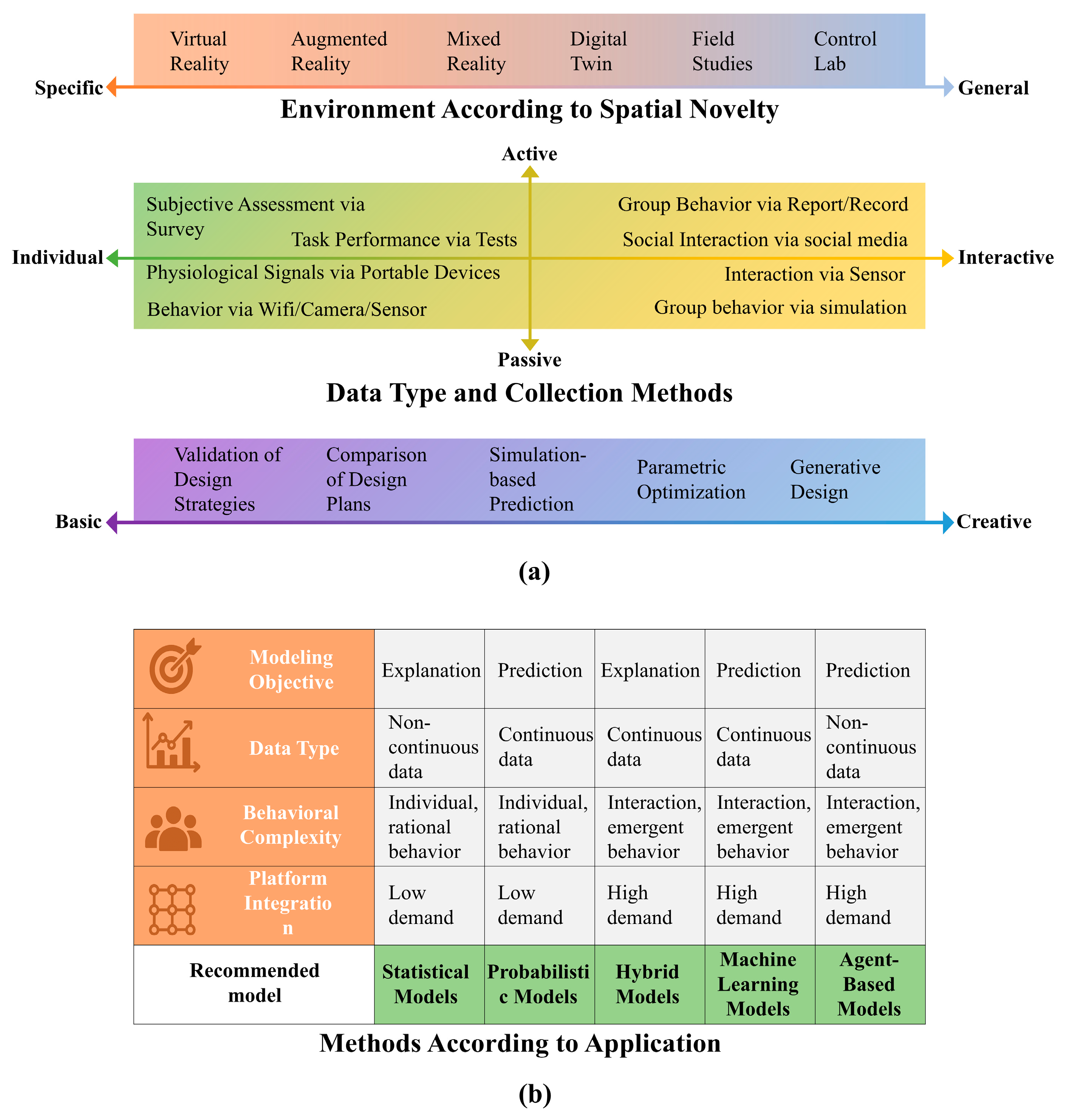 - Occupant modeling applications reveal a significant imbalance between collective and individualized approaches, reflecting an emphasis on building-scale efficiency and regulatory compliance, which tends to aggregate occupant behavior for energy prediction, evacuation planning, and adaptive control strategy simulation. The differences in application scenarios highlight methodological trade-offs: collective models align with system-level objectives but risk oversimplification, while individualized models prioritize behavioral realism but sacrifice broader applicability. Future research may need to bridge these paradigms through hybrid frameworks, potentially achieving a balance between efficiency and personalization, contingent on advancements in data integration and privacy-preserving modeling techniques.