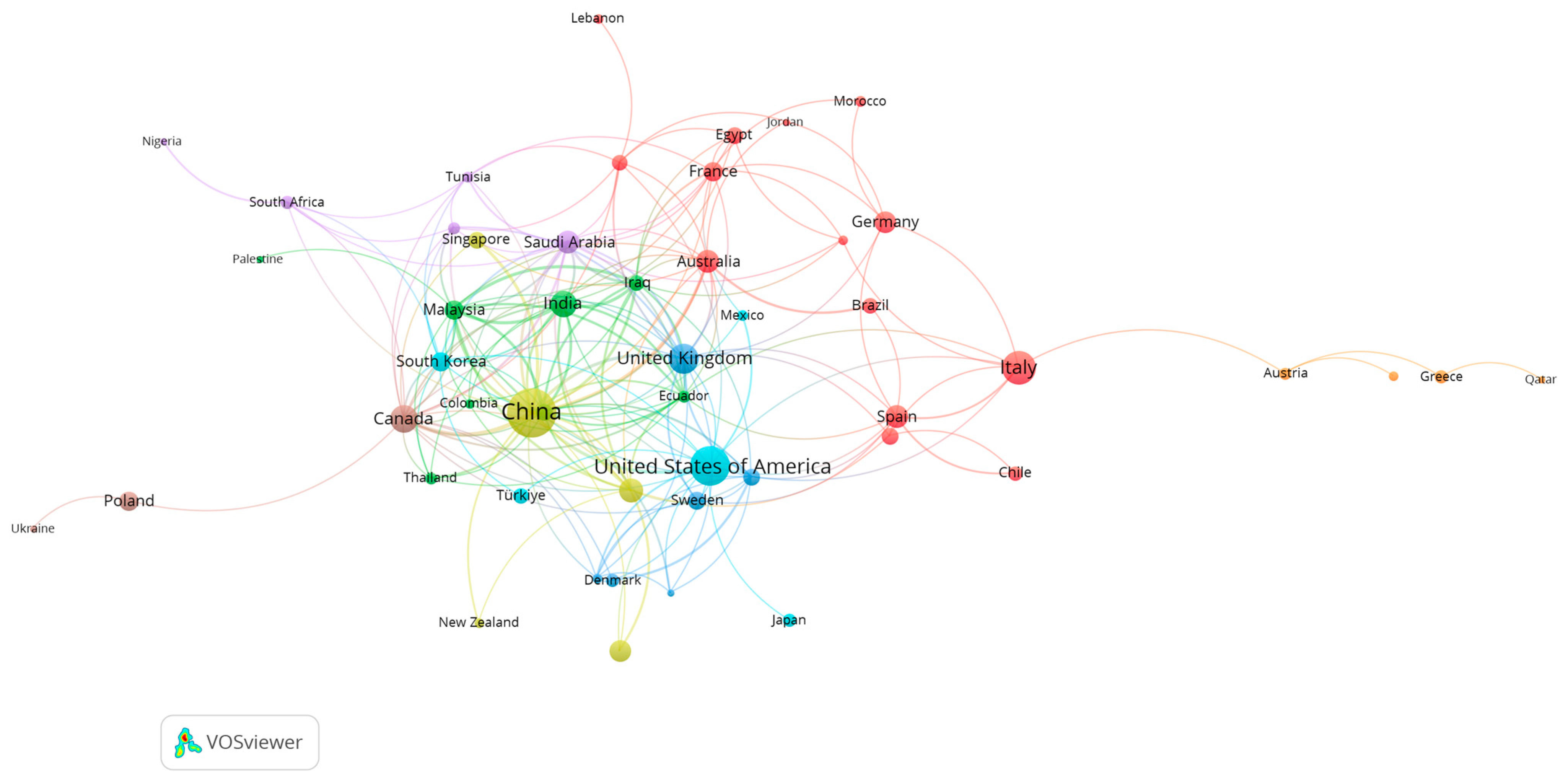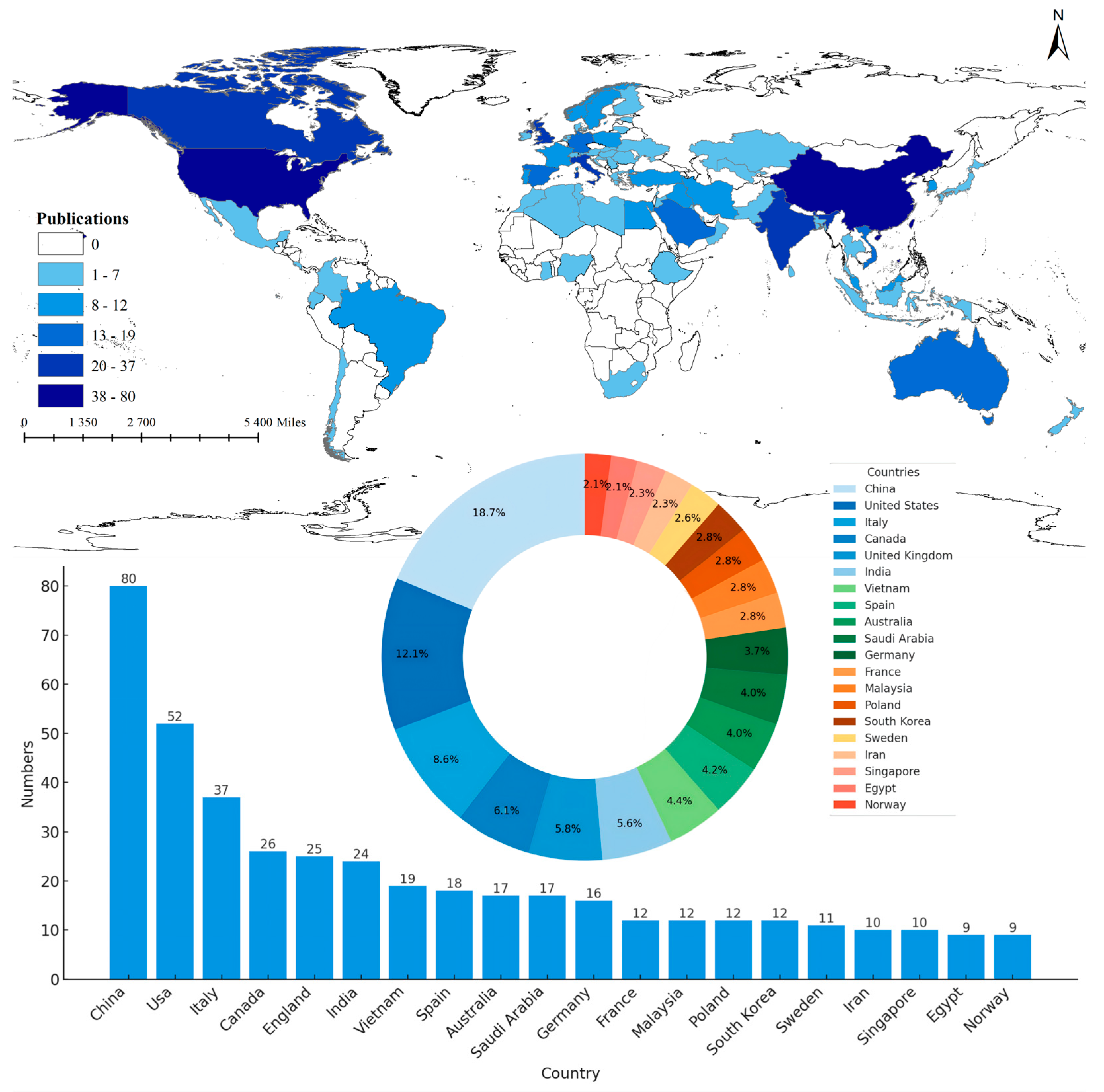 VOSviewer (v1.6.20) was employed to construct national collaboration networks, institutional collaboration networks, author collaboration networks, and keyword co-occurrence networks.