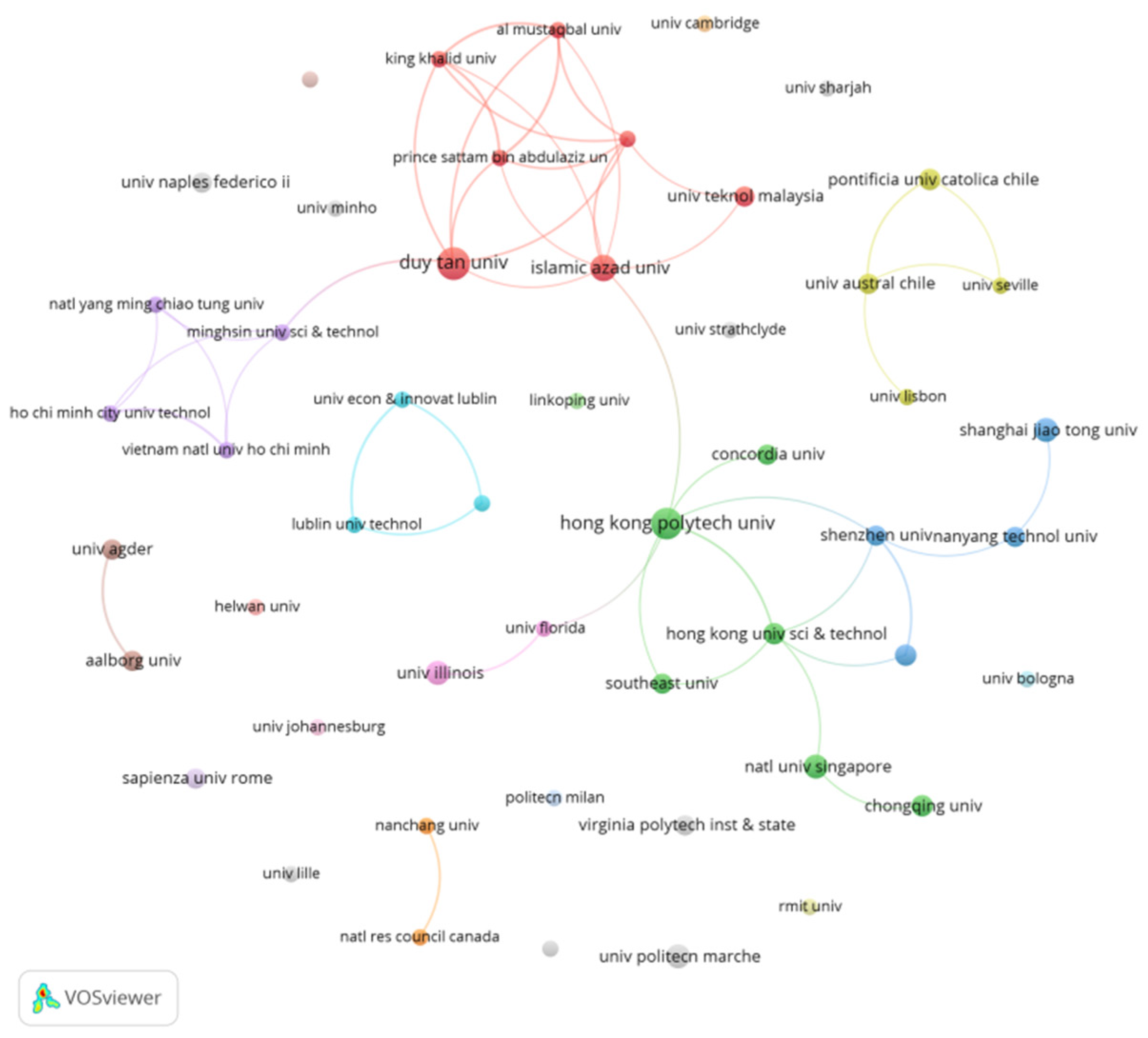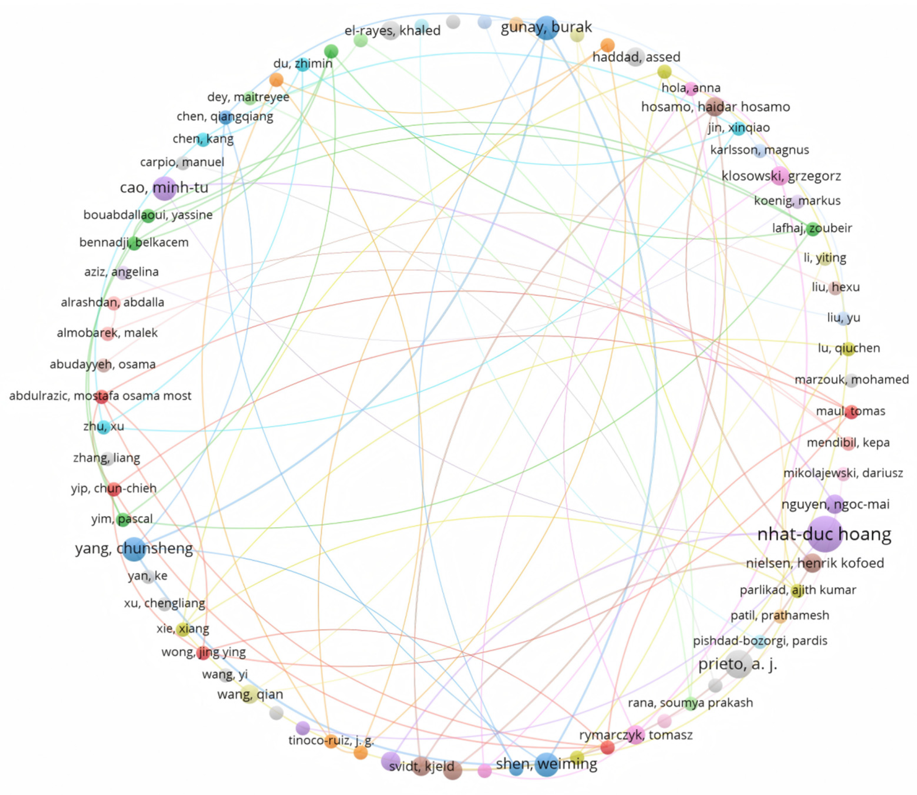 Collaboration Analysis: The collaboration network reveals the dynamic cooperative relationships among research institutions, countries/regions, and authors. Scholars from all major countries are actively engaged in this field, and the leading contributors have been identified to provide references for researchers seeking potential collaborators and appropriate research domains. China, the United States, Italy, Canada, and the United Kingdom are the countries with the closest collaboration. More specifically, the leading institutional participants include Duy Tan University, The Hong Kong Polytechnic University, and Islamic Azad University. Among individual scholars, Nhat-Duc Hoang, A. J. Prieto, and Minh-Tu Cao are identified as the most active collaborators.