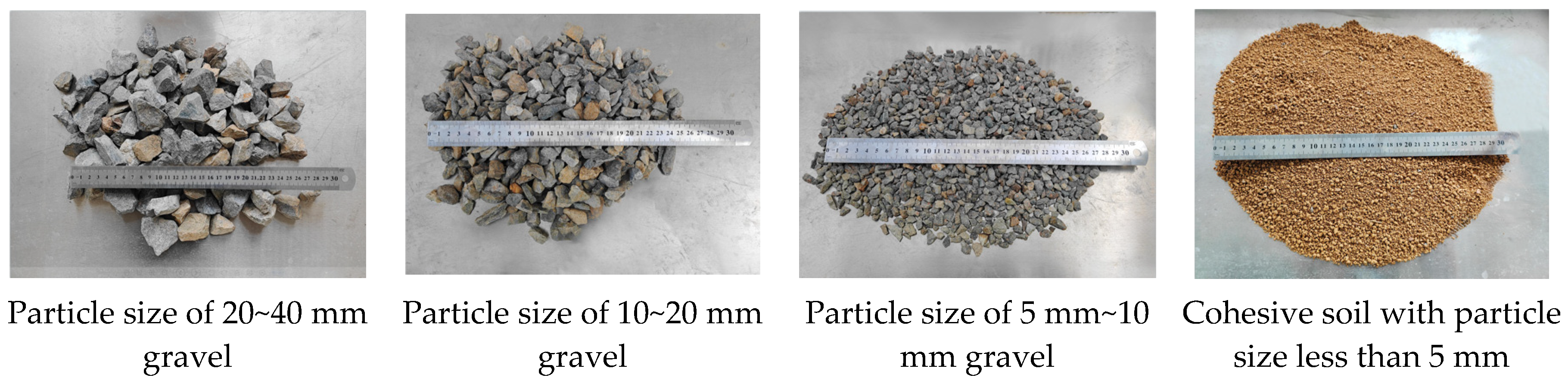 - Tang, J.; Xu, D.; Liu, H. Effect of gravel content on shear behavior of sand-gravel mixture. Rock Soil Mech. 2018, 39, 93–102. [Google Scholar] [CrossRef]