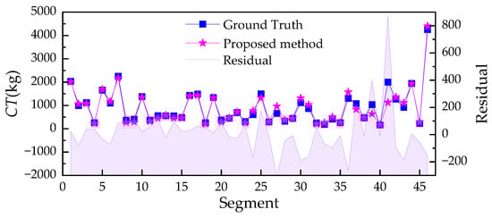 In stark contrast, the proposed method consistently outperformed all baselines. This superiority derived from the synergistic innovations: (1) DBN pretraining for robust initialization and high-level feature capture; (2) SE attention for dynamic feature recalibration; (3) RankGauss transformation to stabilize the target distribution and improve calibration; and (4) ensemble aggregation of diverse top models to reduce variance and enhance robustness. Notably, as shown in Figure 11, the method excelled at predicting extreme values—e.g., at segment 46, where cement injection volumes exceed 4000. Among 448 samples, only 3 such cases existed, yet the model generalized accurately, highlighting its exceptional capacity to handle rare, high-magnitude events.