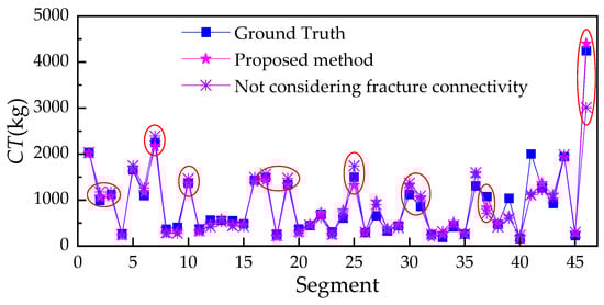 To assess whether explicitly encoding 3D fracture connectivity enhances prediction accuracy, we employed a controlled-variable experimental design: only the fracture set intersecting the grout hole was allowed to vary, while all other inputs and modeling conditions remained fixed. As shown in Figure 9, both approaches broadly followed the measured cement consumption trend, but the connectivity-aware model aligned more closely with empirical observations and substantially reduced the large local deviations evident in the baseline.