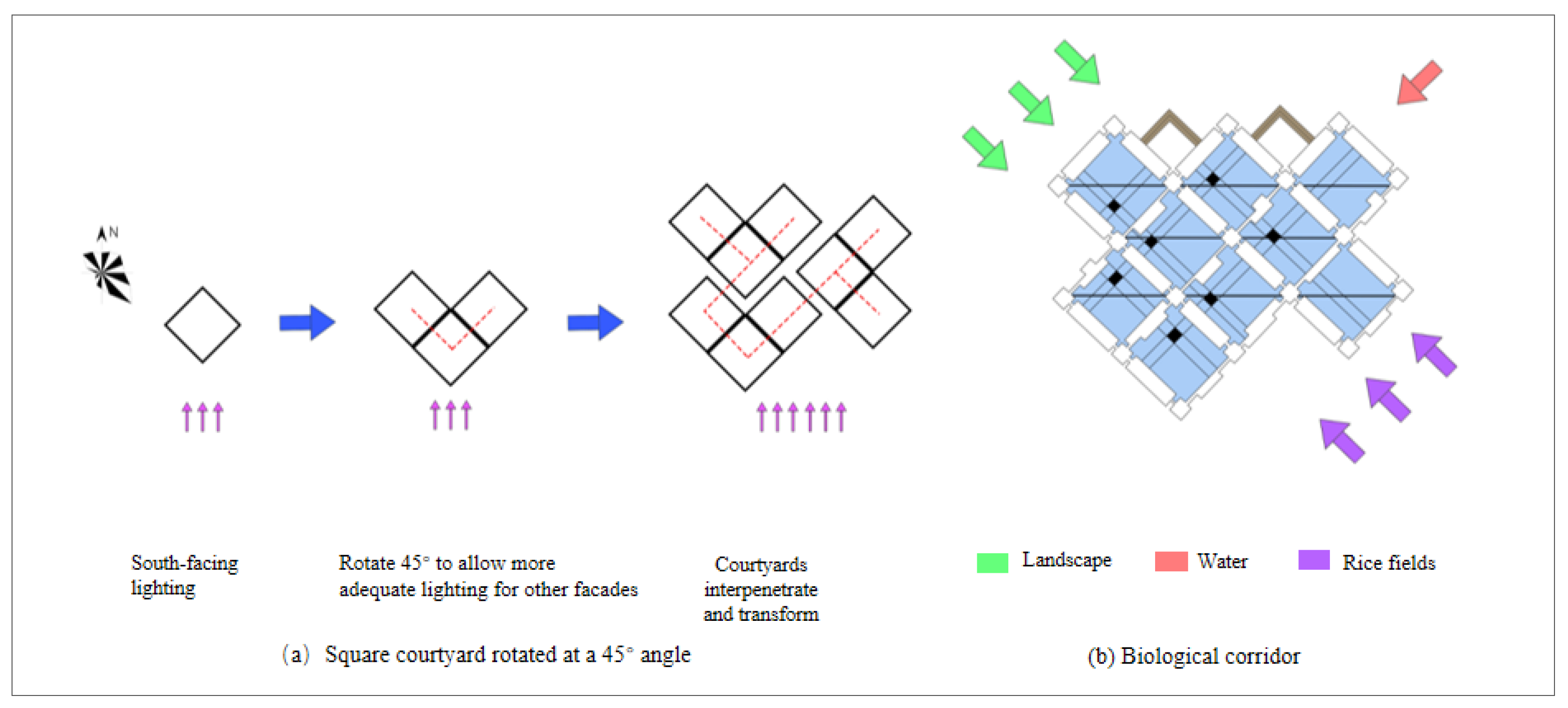 | Topic 1 | Architectural Form | Building layout, daylighting design, orientation, insulation, building materials, corridor connection | Spatial organization and scale control; thermal-light balance | Built Environment Level (Building–Environment–Health Model) | Built Environment |