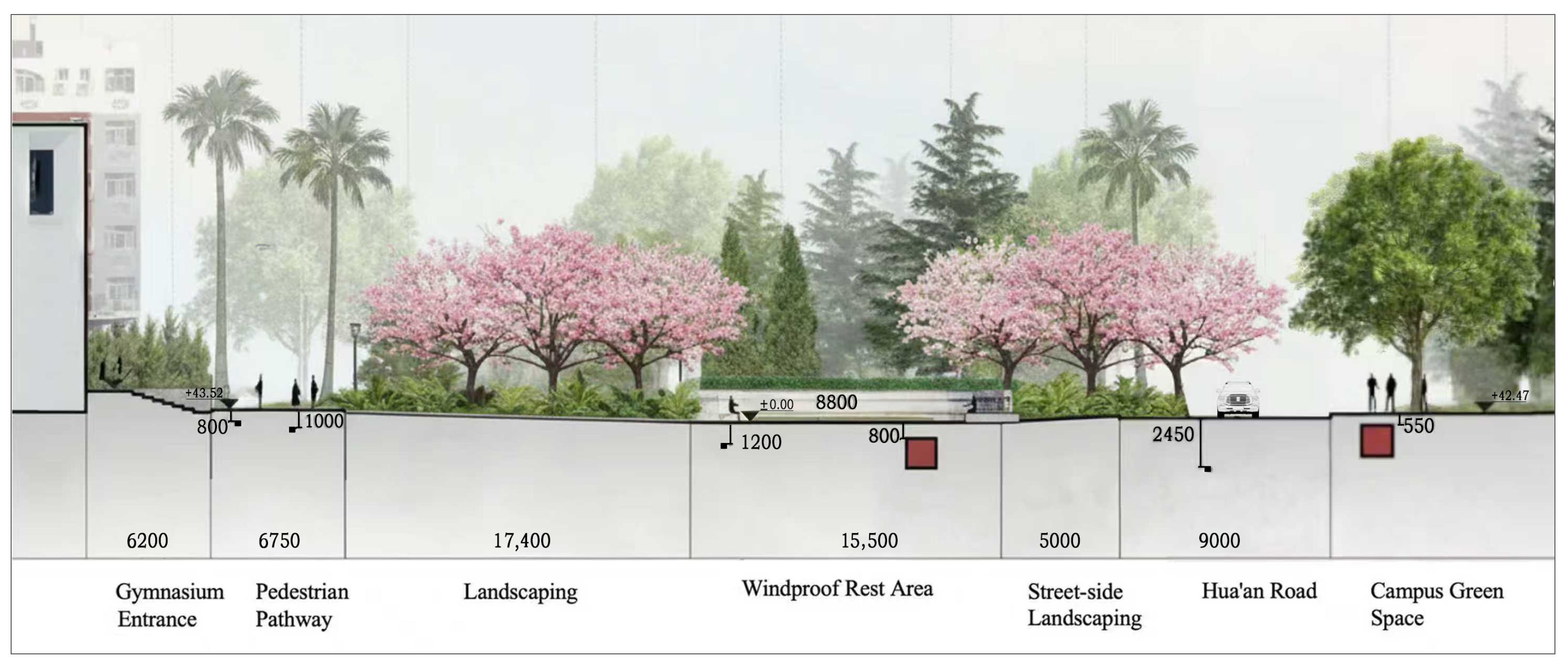 | Safety and Accessibility | Protective and guidance-oriented design | Extended activity duration and spatial range | Reduced risk perception and anxiety | Heilongjiang Institute of Technology—Hierarchical lighting system; Northeast Agricultural University—Anti-slip permeable pavement |