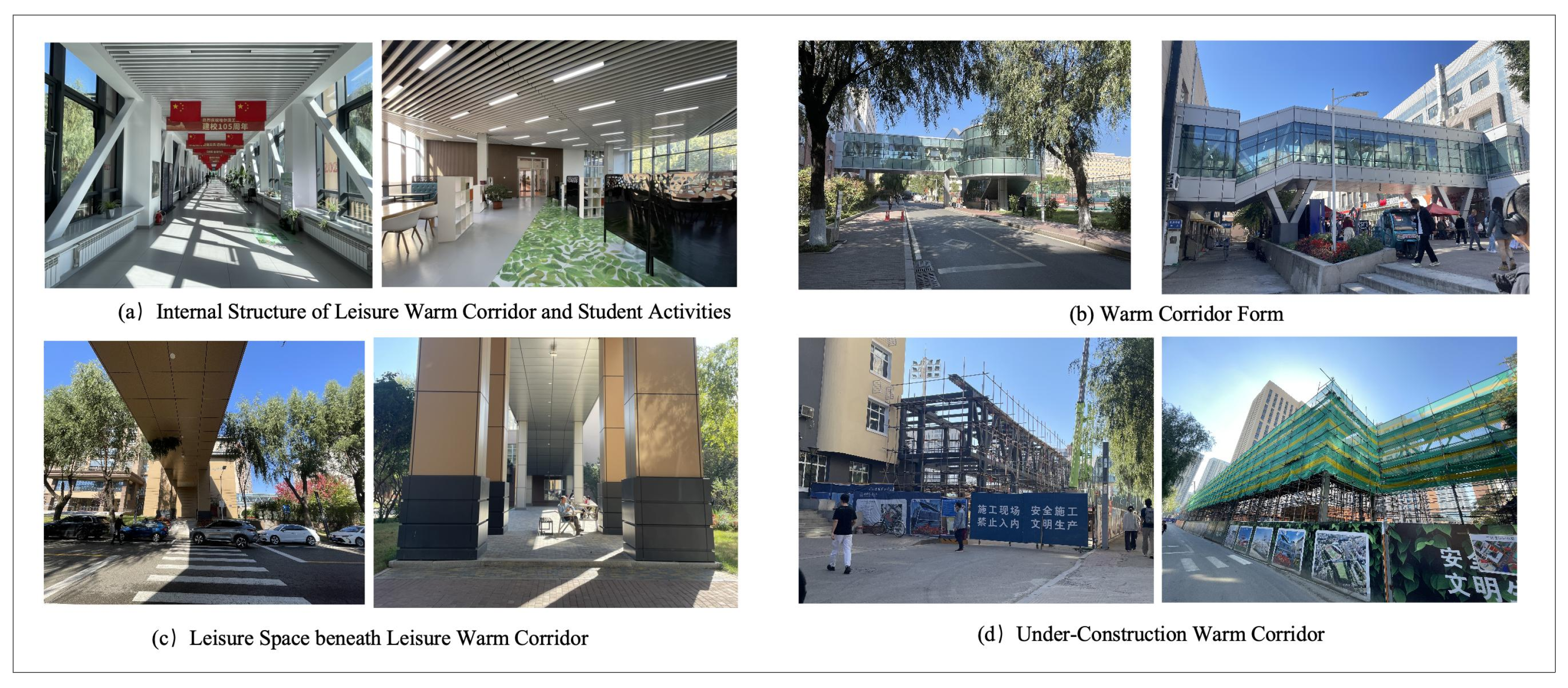 | Built Environment Design | Microclimate optimization and integrated circulation | Improved travel willingness and comfort | Promotion of daily walking | Shenyang Jianzhu University—Building layout; Xi’an Eurasia University—Wind-proof design; Harbin Institute of Technology—Corridor system |