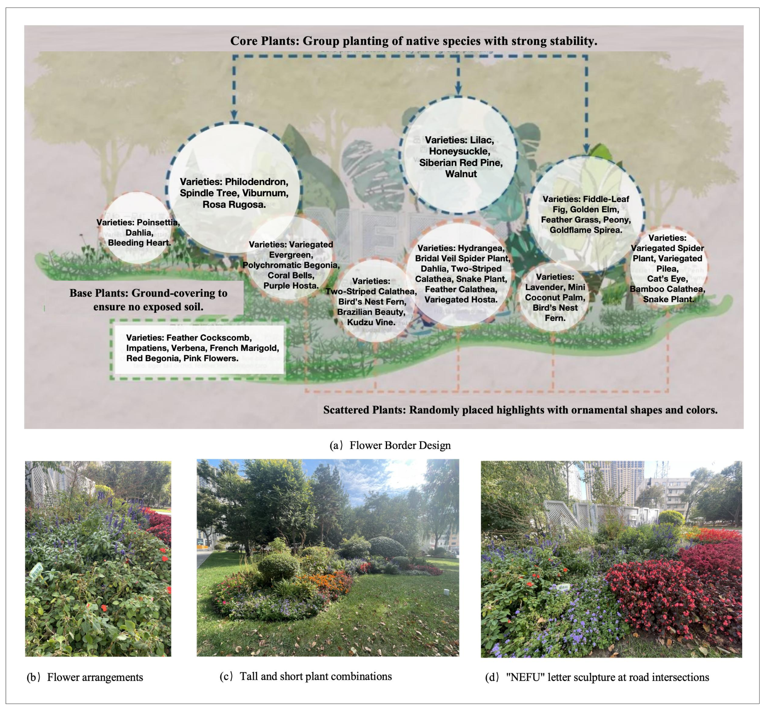 | Landscape and Ecological Strategy | Aesthetic and nature-based experience | Enhanced emotional stability and pro-environmental behavior | Improved mental health | Northeast Forestry University—Four-season landscape design |