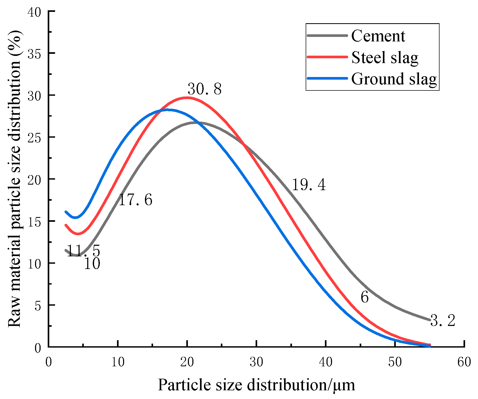- Cai, X.; Cao, Z.; Sun, J.; Wang, H.; Wu, S. Influence of steel slag on properties of cement-based materials. Buildings 2024, 14, 2985. [Google Scholar] [CrossRef]