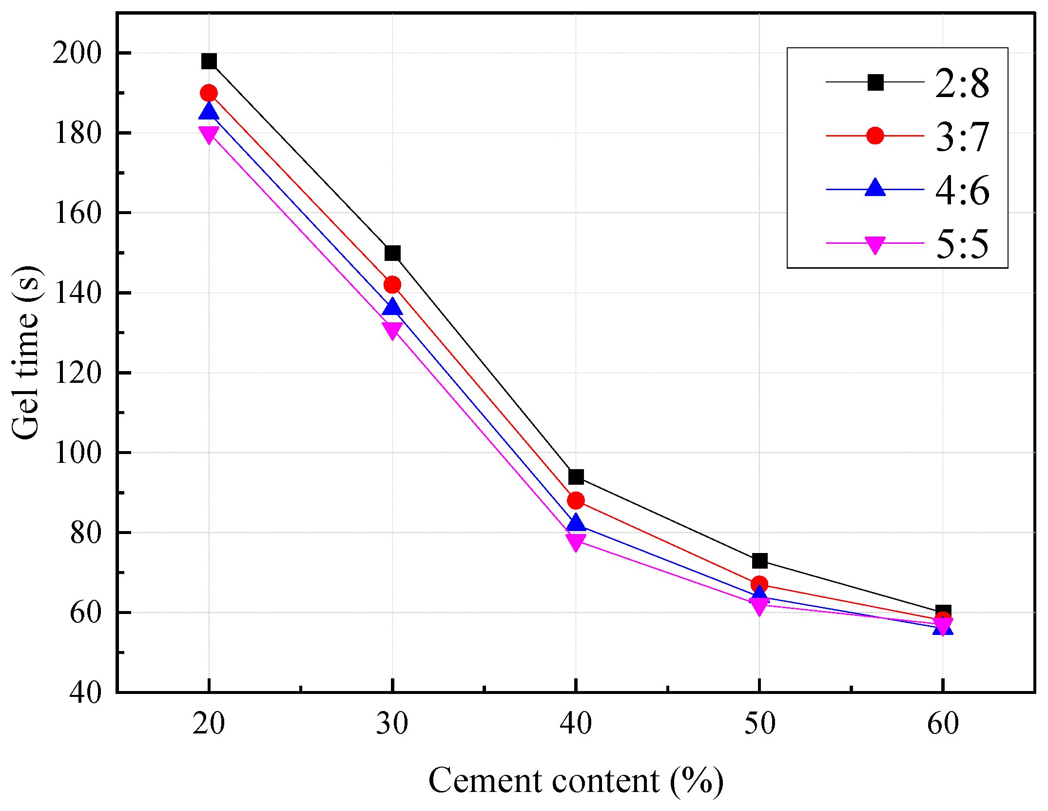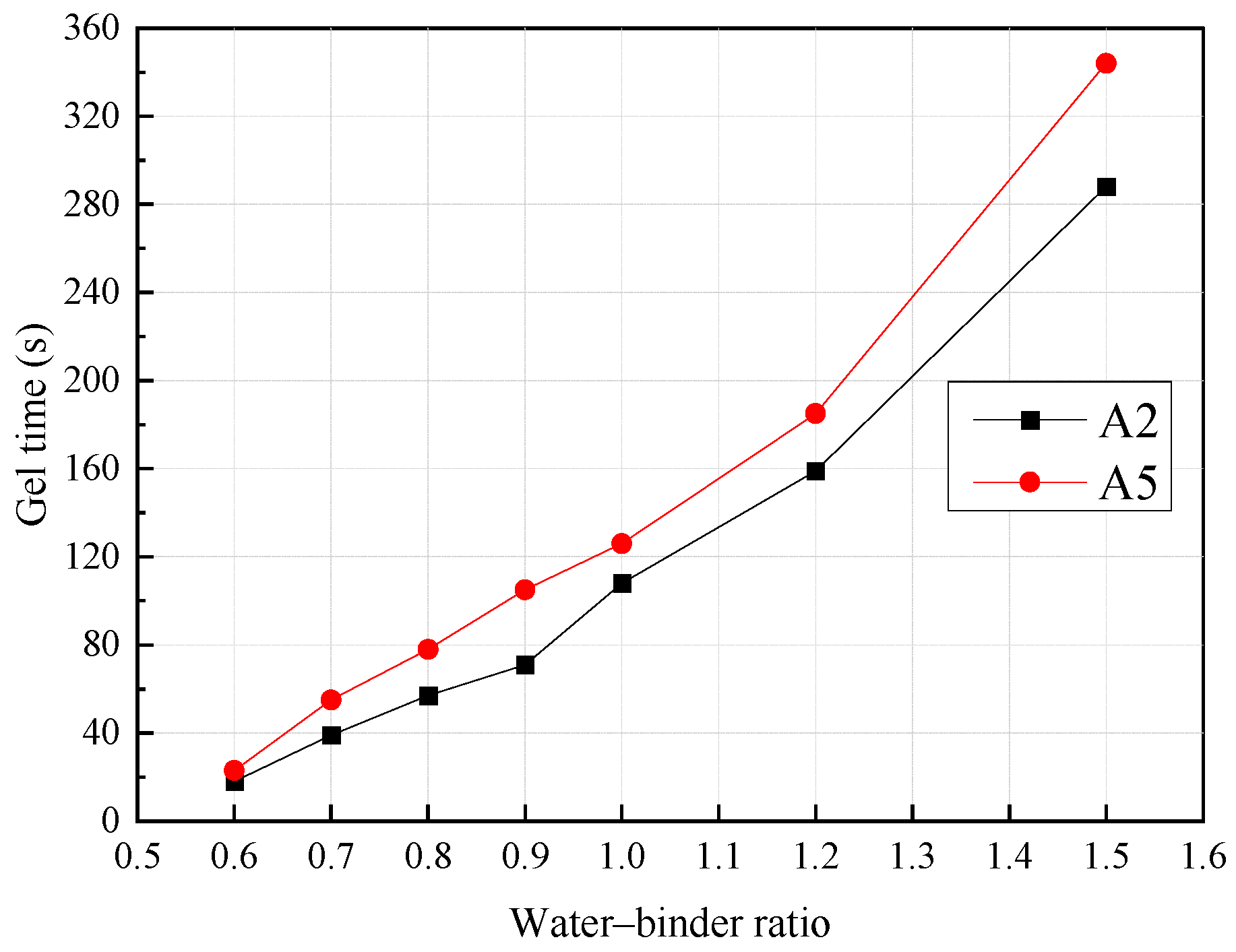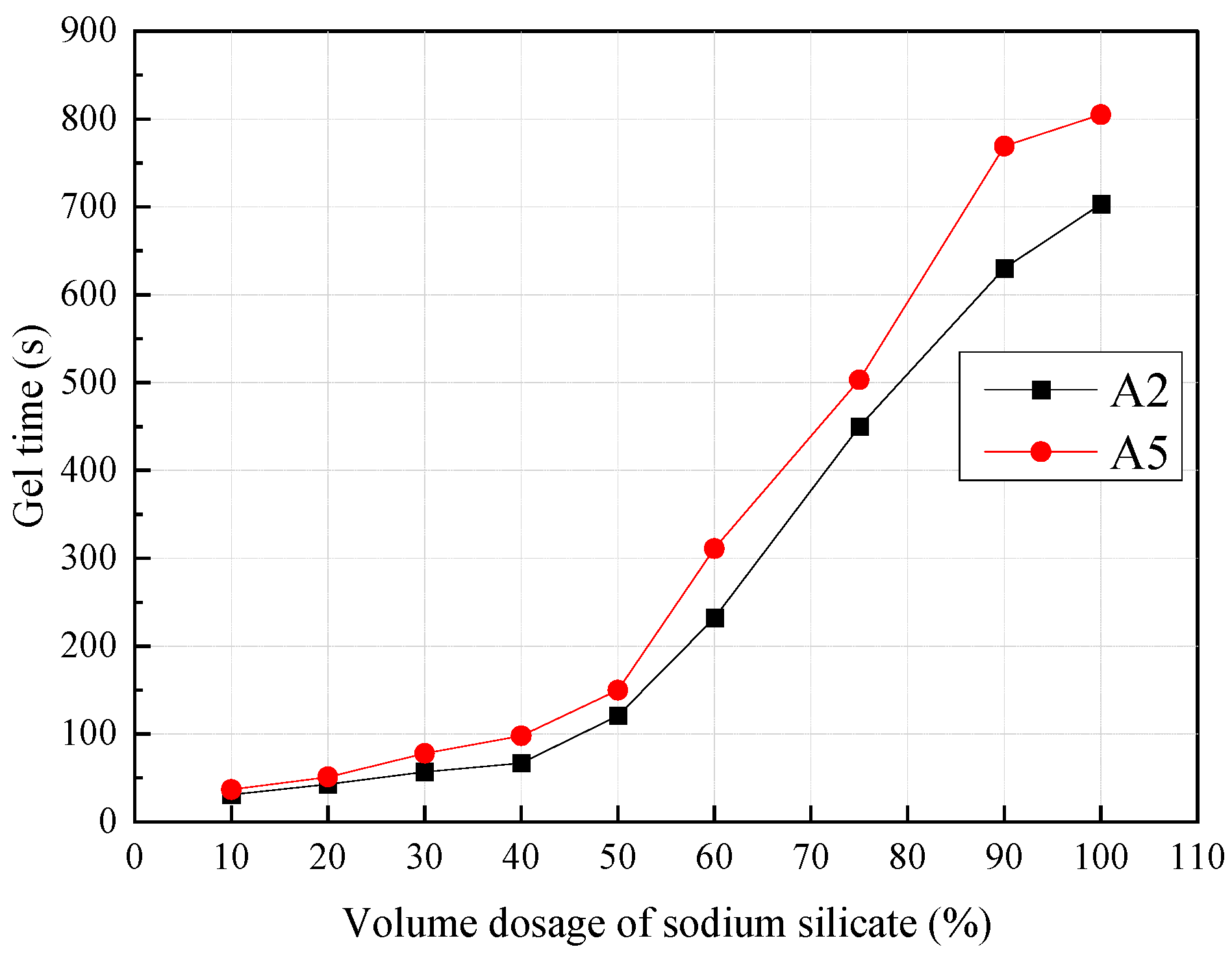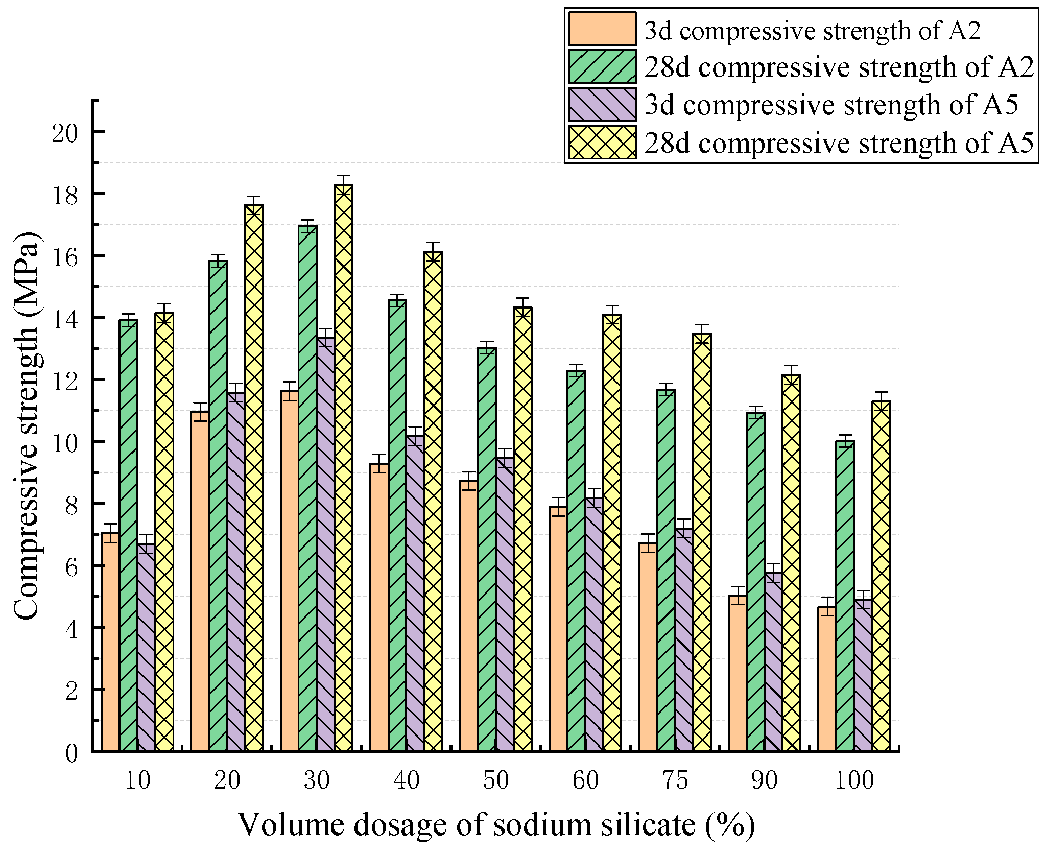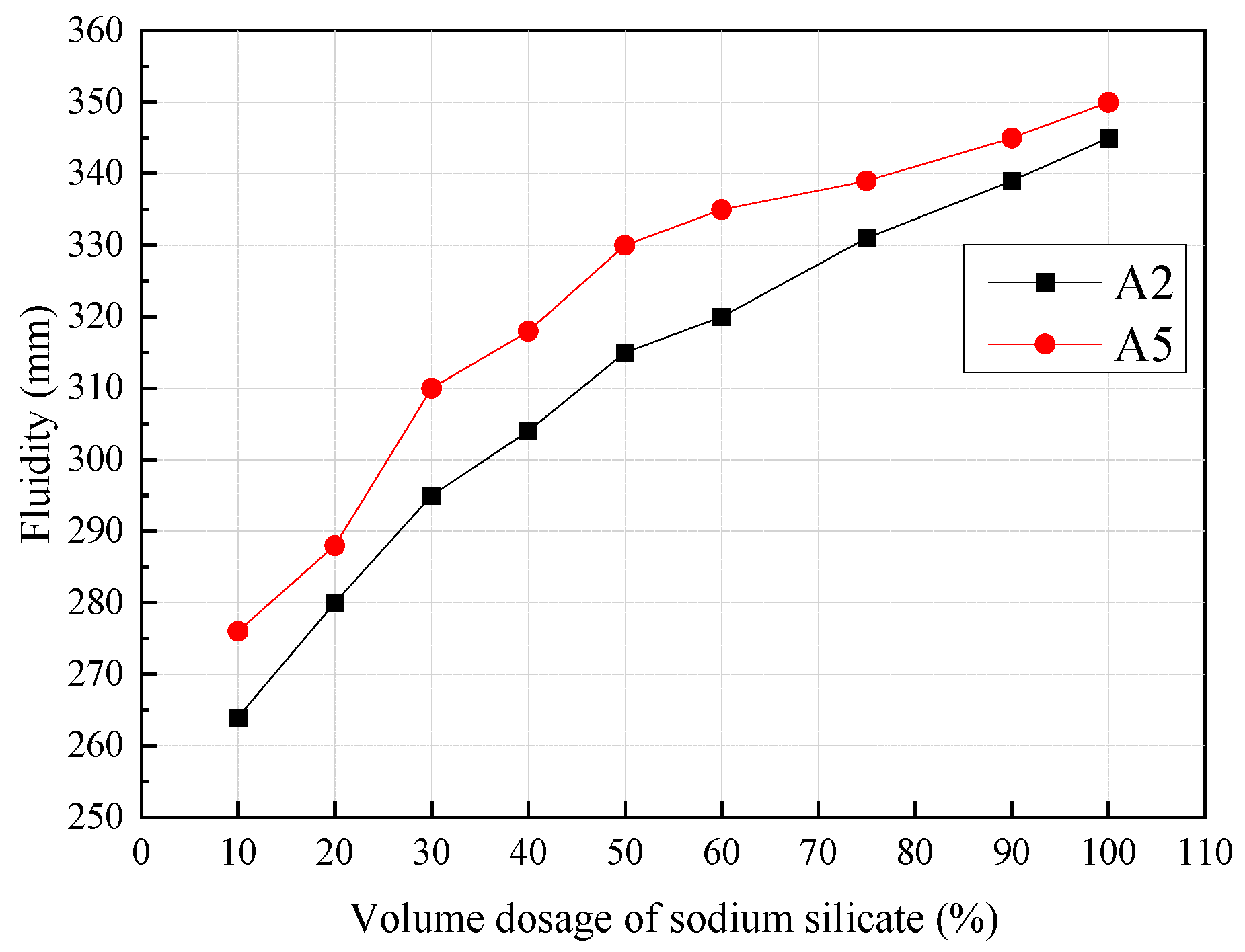 3.2. Effect of the Sodium Silicate Volume on the Performance of Grouting Materials