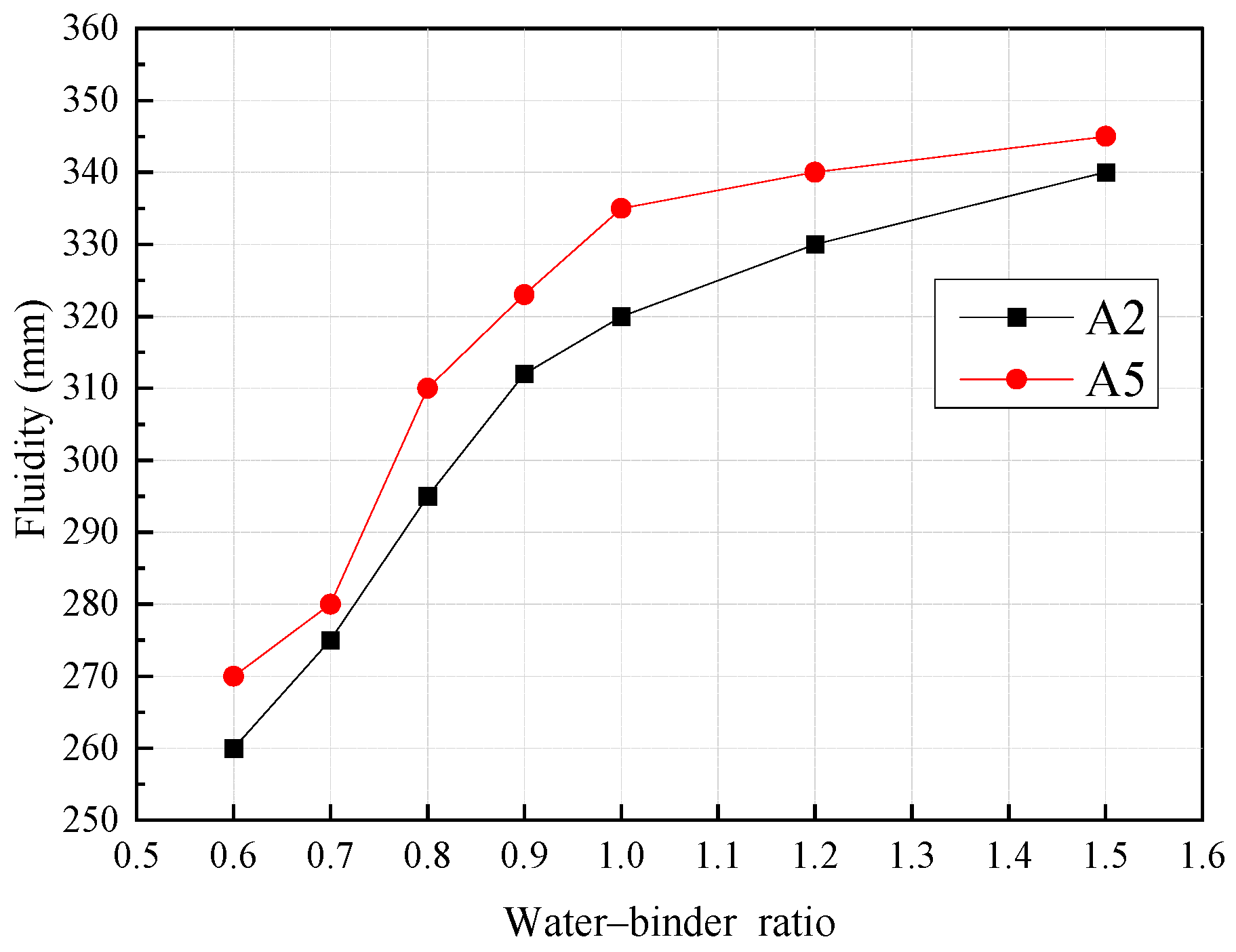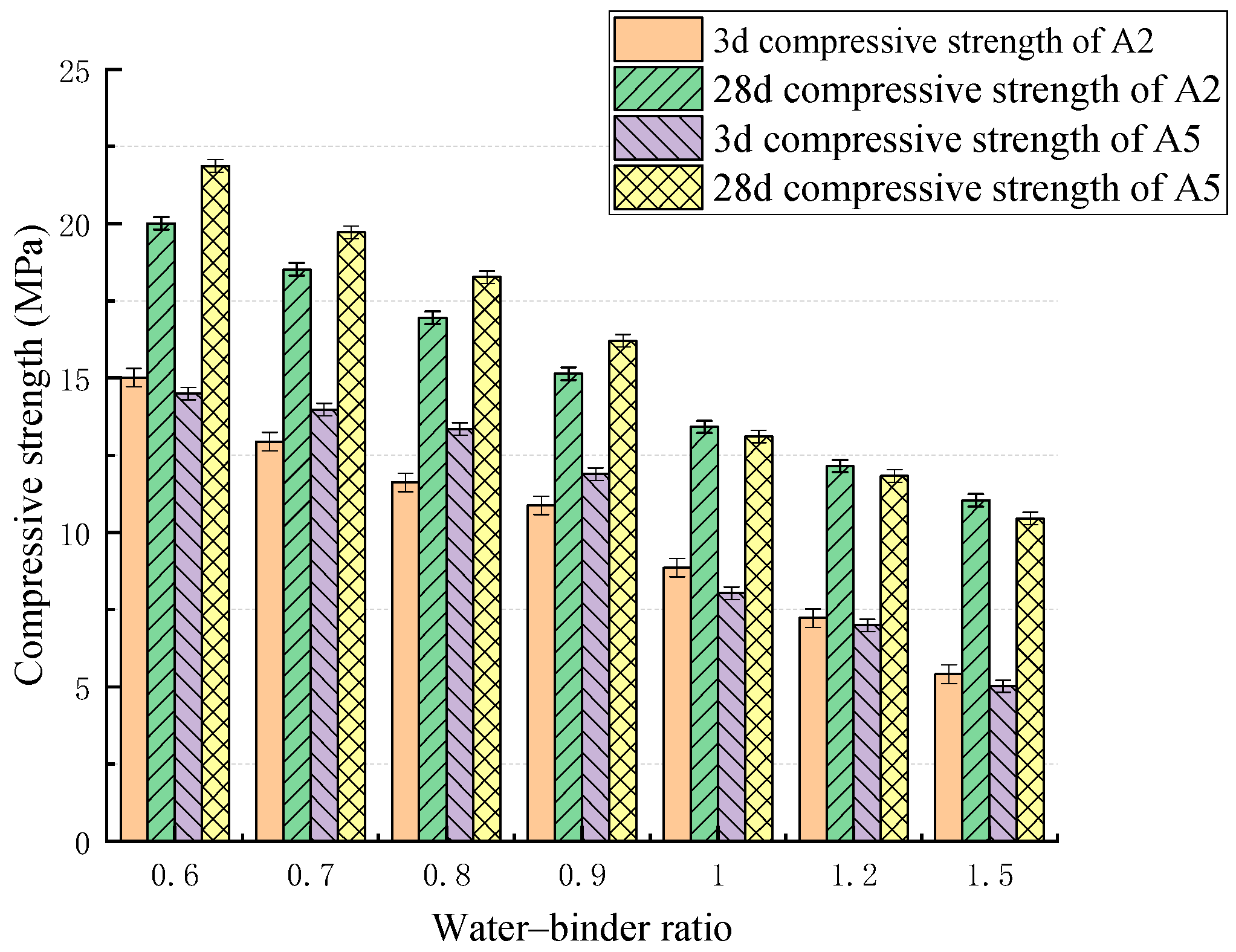 3.3. Effects of the Water–Binder Ratio on the Performance of Grouting Materials