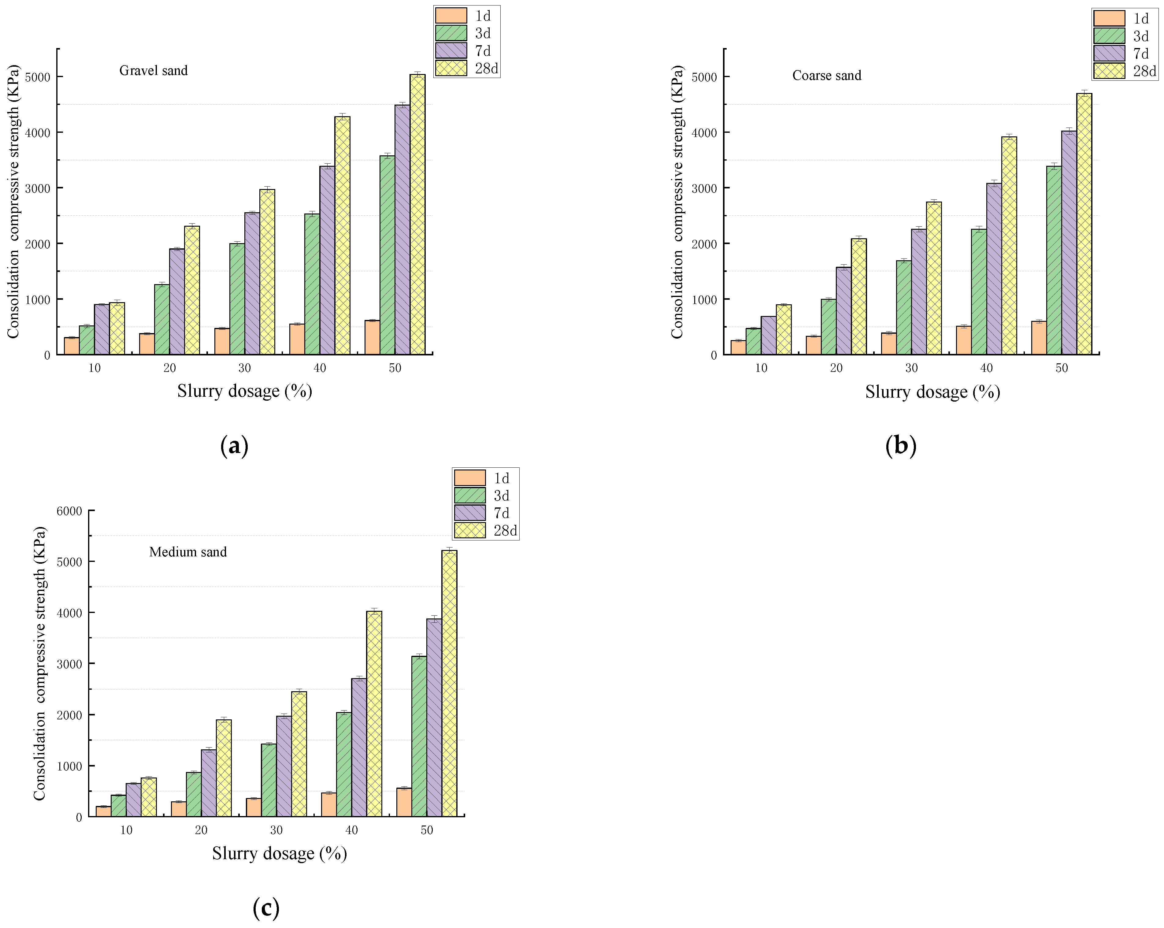 4.4. Effect of Slurry Dosage on the Strength of Sandy Soil Consolidation