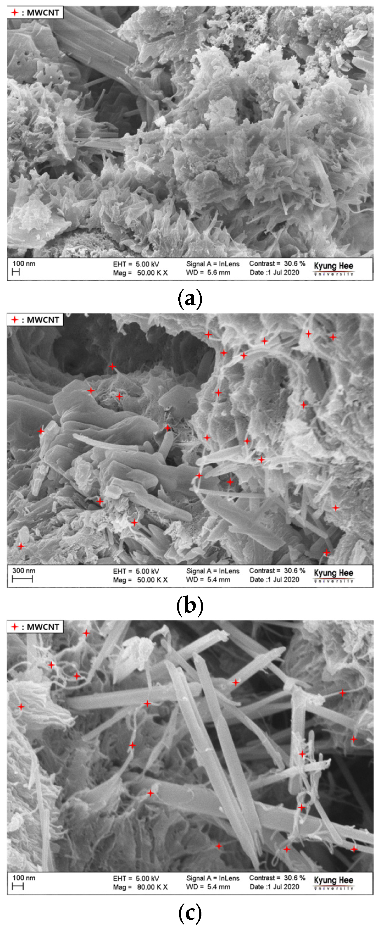 - Li, G.Y.; Wang, P.M.; Zhao, X. Mechanical behavior and microstructure of cement composites incorporating surface-treated multi-walled carbon nanotubes. Carbon 2005, 43, 1239–1245. [Google Scholar] [CrossRef]