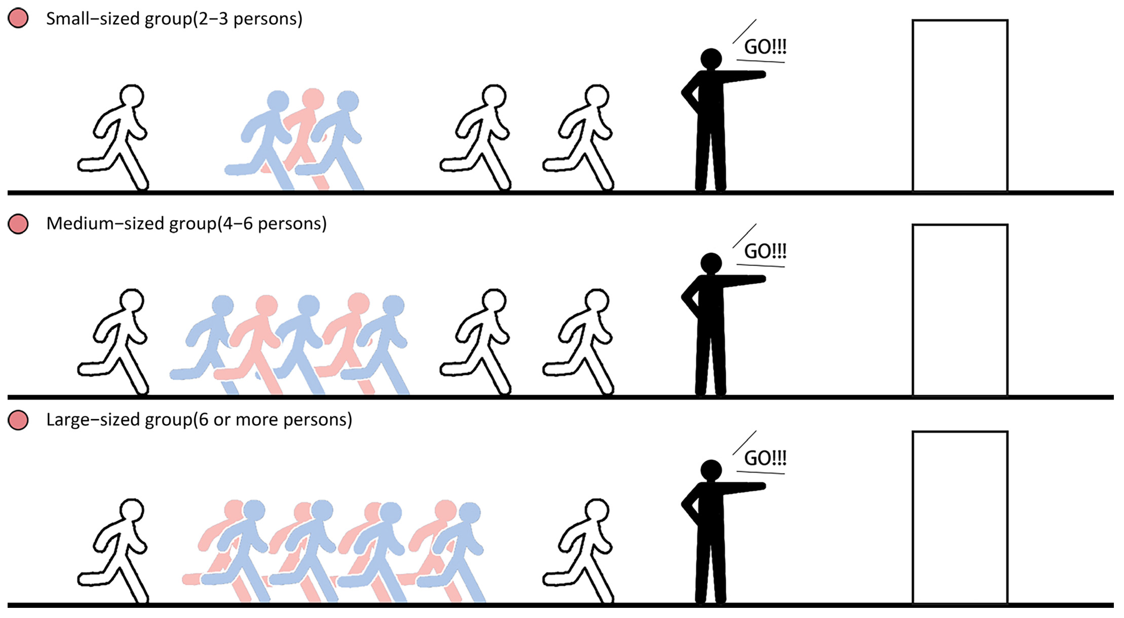 This study examined the differences in school-aged children’s grouping behavior under ordered and disordered evacuations and their effects on indicators such as speed, group size, and crowd density. In the following discussion, the findings were compared with previous research.