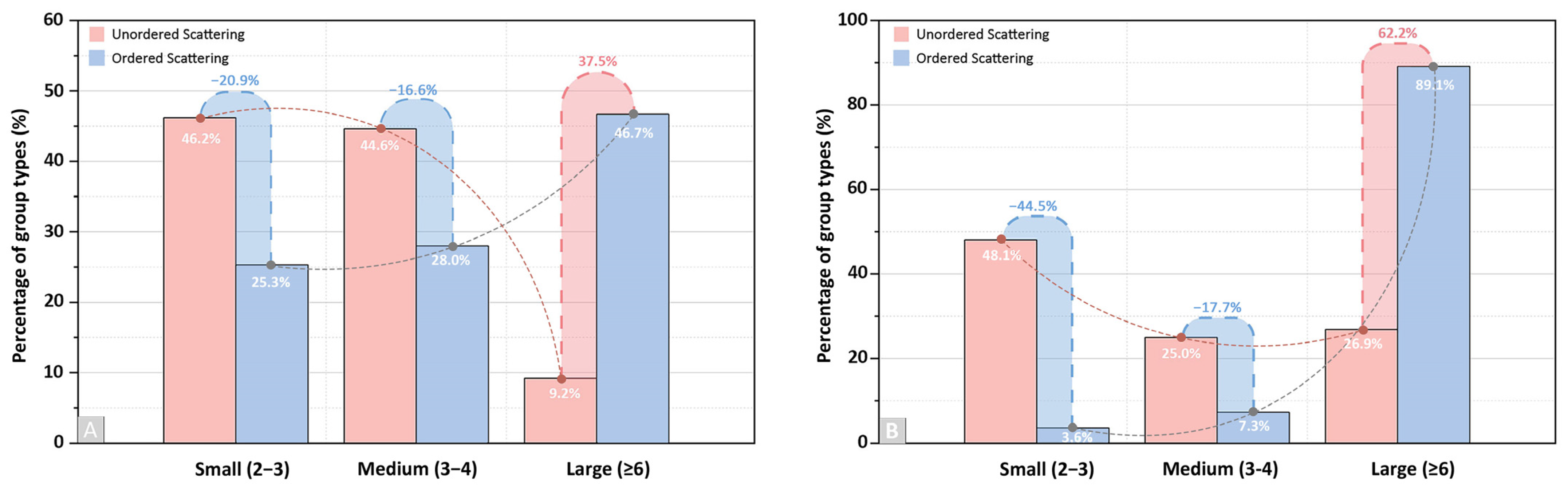24]. Similarly, Ren et al. noted that when group proportions were high, coordination among individuals improved, fostering persistent formation and reducing separation, interference, and conflict [