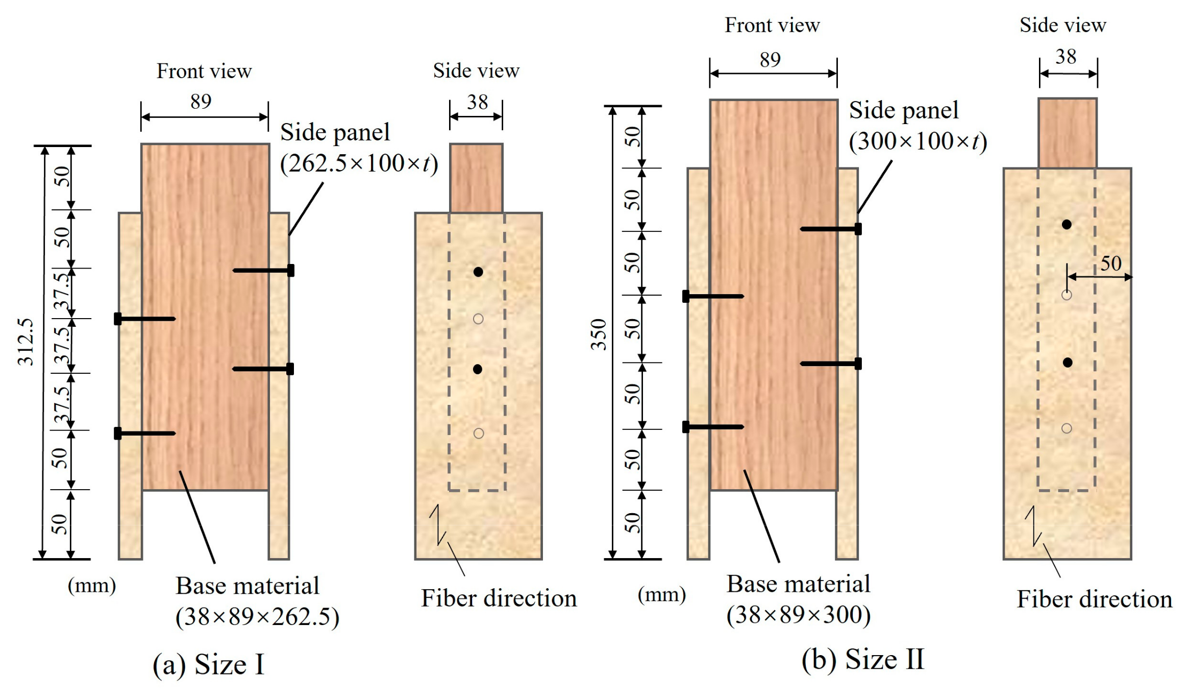 - ASTM D1761-12; Standard Test Methods for Mechanical Fasteners in Wood. ASTM International: West Conshohocken, PA, USA, 2012.