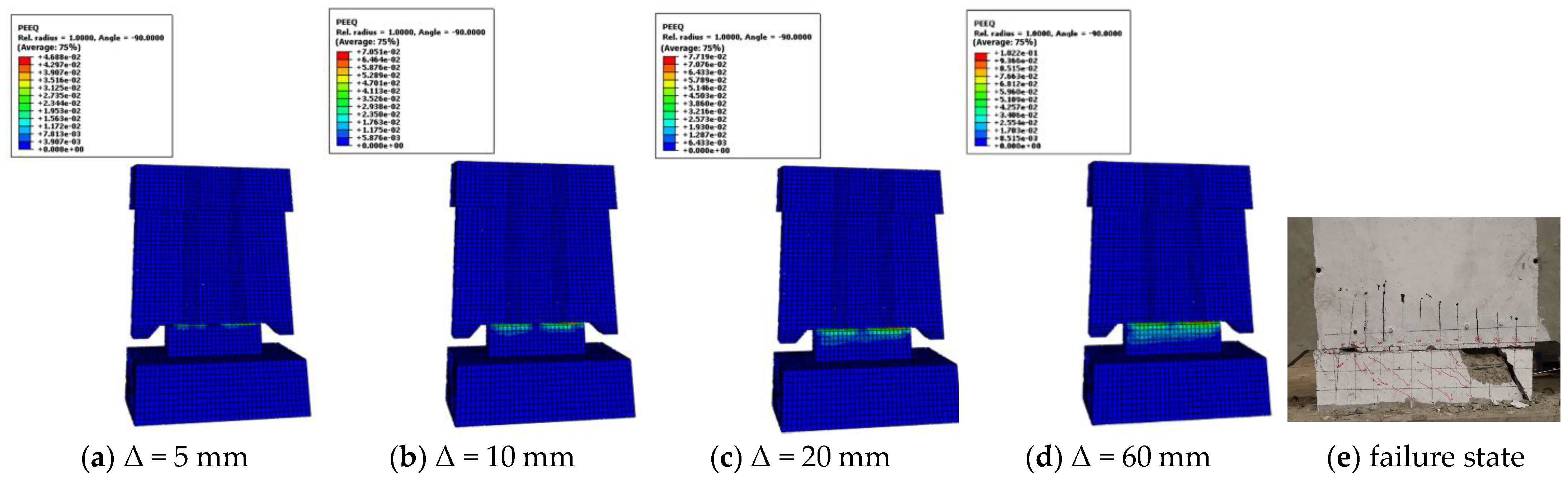 4.2. Comparison of Failure Patterns in Finite-Element Models