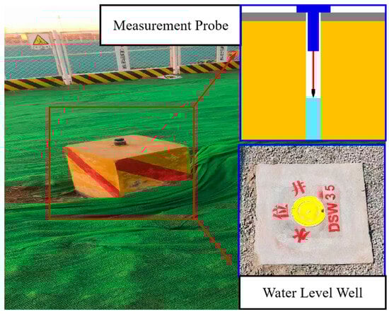 Automated groundwater level monitoring was employed in this study. The monitoring wells were drilled using a geological drilling rig with a borehole diameter of 110 mm. A Φ48 mm filter pipe was installed inside the borehole, and a monitoring probe was used to track groundwater level fluctuations. The layout of the groundwater monitoring points is shown in Figure 8.