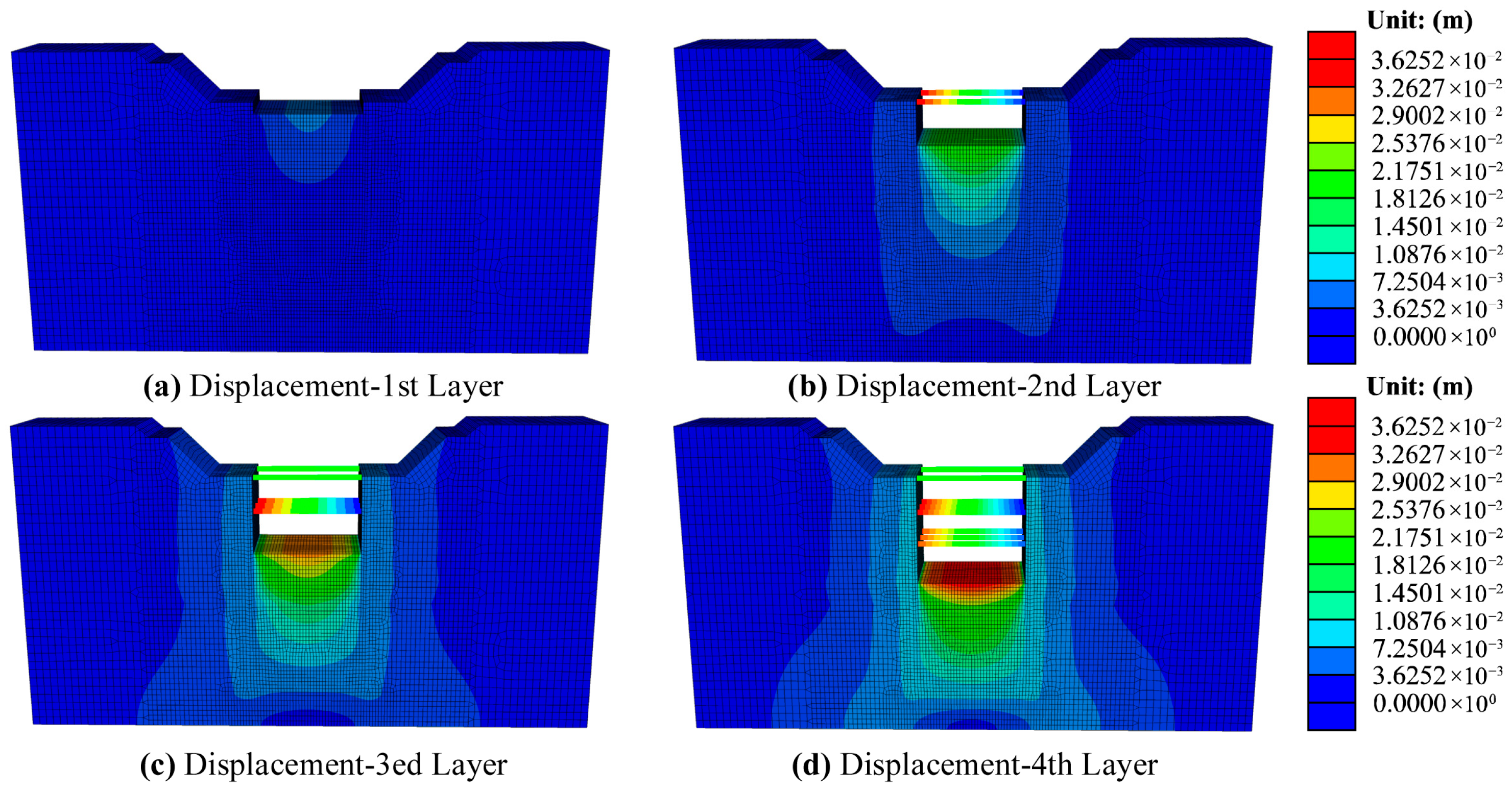 | Layered Excavation Support | Excacation① Excacation② Excacation③ Excacation④ | Horizontal displacement of the foundation pit |