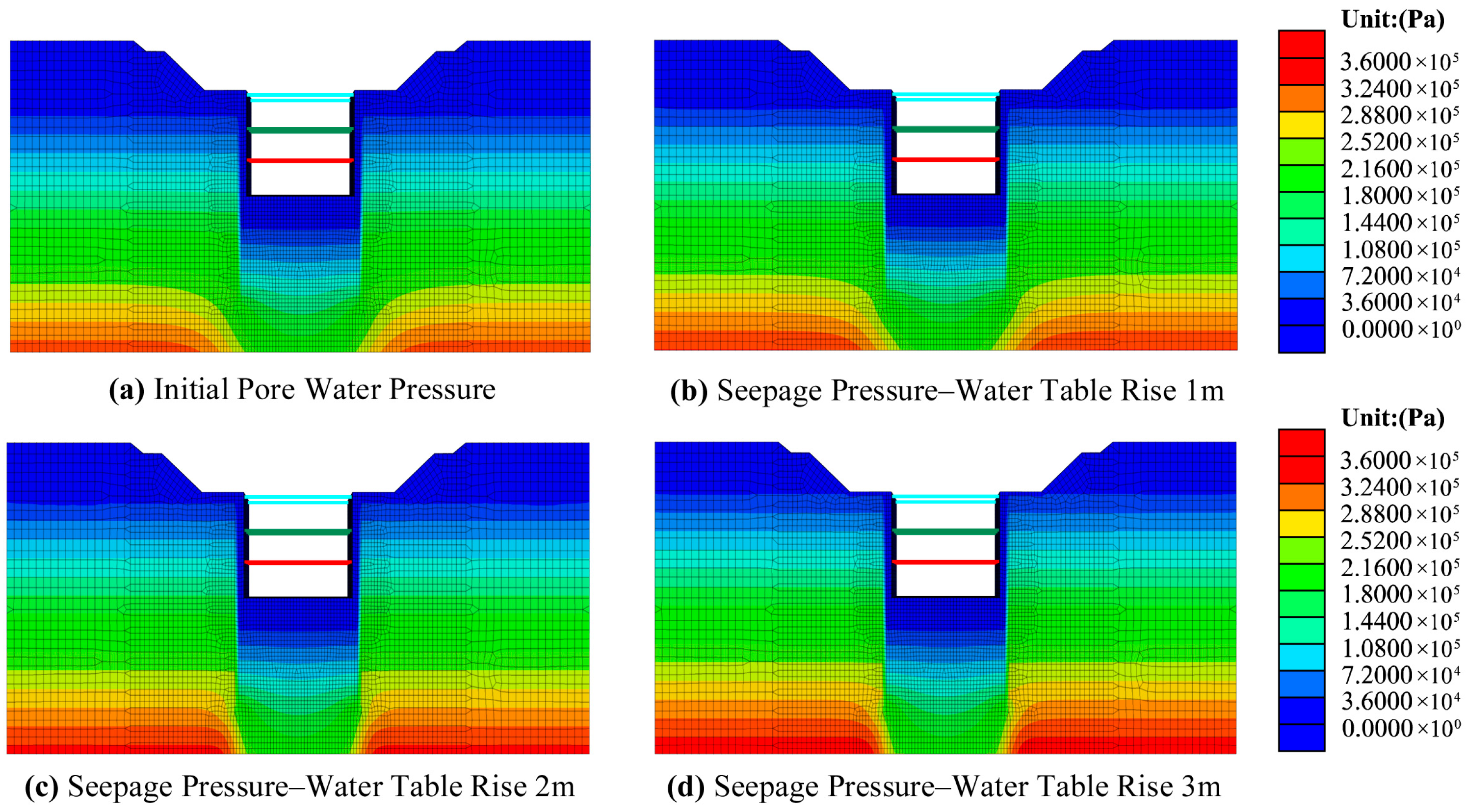 - This study used numerical simulations to predict a critical water rise height of 15%H in water-rich sand excavations, offering guidance for rain-related reinforcement in sandy soils. For excavations in different soil types, the critical hazardous height may vary.