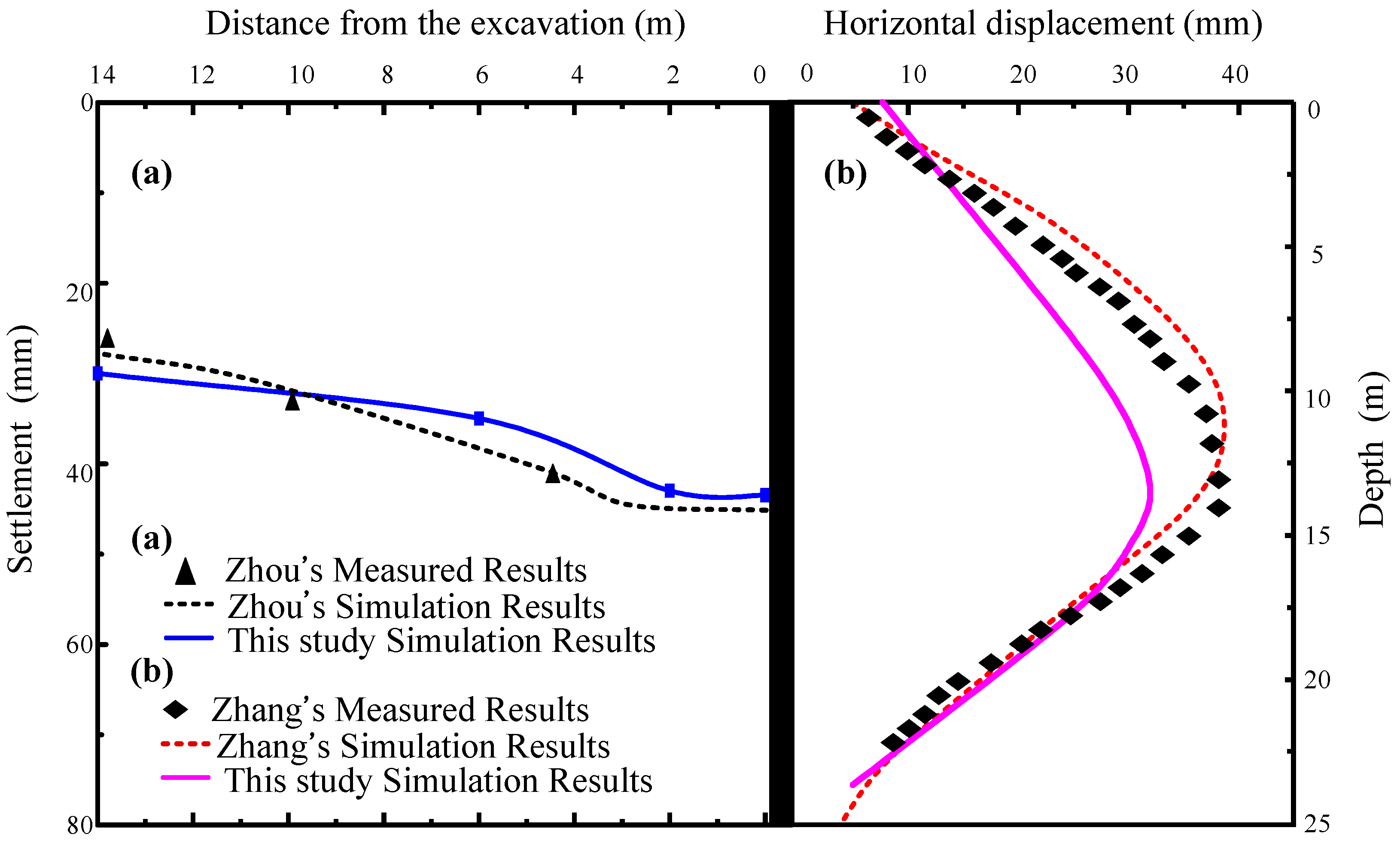 - Xu, Z.H.; Wang, W.D. Selection of soil constitutive models for numerical analysis of deep excavations in close proximity to sensitive properties. Rock Soil Mech. 2010, 31, 258–264. [Google Scholar] [CrossRef]