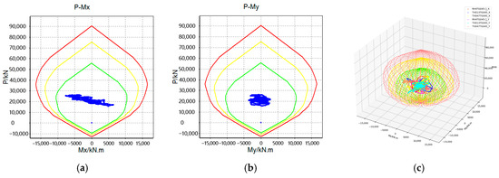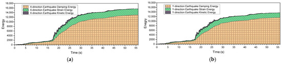 - Podium Seismic Response. The podium exhibited significant vertical irregularities but maintained stable performance. The YJK and PMSAP models produced consistent results under frequent earthquakes. Under rare earthquakes, maximum interstory drifts were 1/103 (X) and 1/89 (Y), with more than 80% of total energy dissipated by material hysteresis, satisfying PBSD requirements for “no collapse under rare earthquakes.”