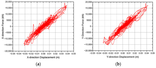 | Main Direction | Base Shear Force for Frequently Occurring Earthquakes (kN) | Rare Earthquake Elastoplastic Load Case | Base Shear Force for Elastoplastic Load Cases (kN) | Base Shear Ratio of Elastoplastic/Elastic Cases |