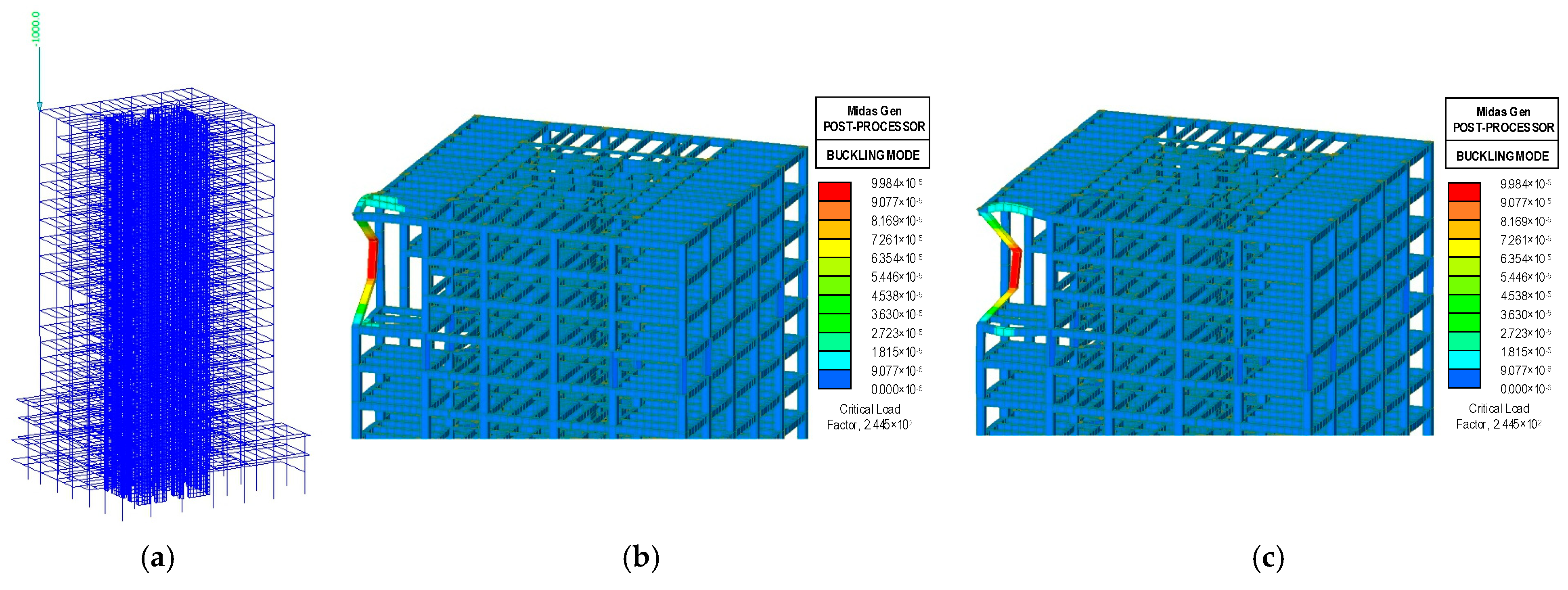 - Performance of Skip-Floor Columns. Buckling analysis yielded an effective length coefficient of μ = 0.589, confirming that physical height can be used as the design length. PBSD verification showed that column internal forces remained within the elastic P–M envelope under rare earthquakes, meeting the target of elastic behavior under extreme conditions.