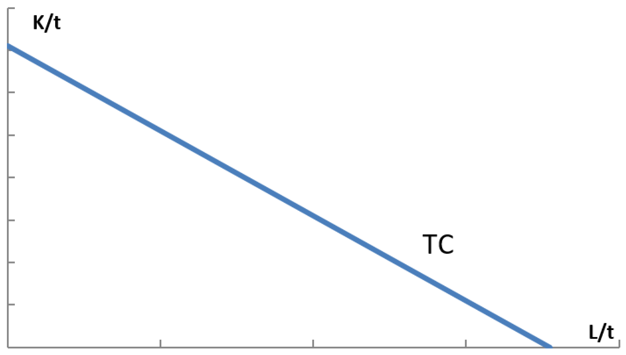 For the analysis of the entire system, it is possible to construct an isoquant that describes all combinations of different inputs which result in the production of the same output (see Figure 3).