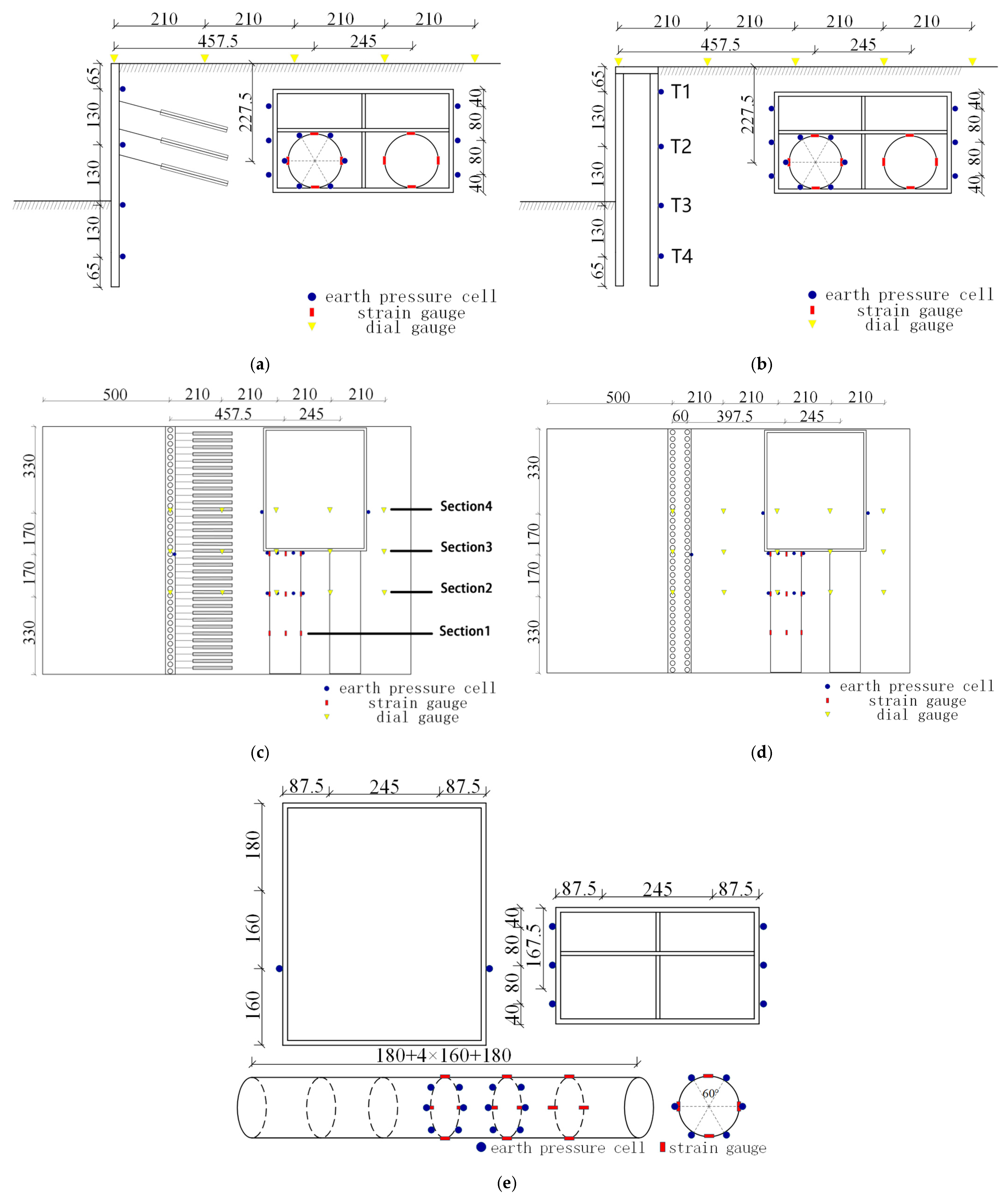 - Hu, X. Influence of foundation pit excavation under different conditions simulating by model test on existing tunnel. Subgr. Eng. 2015, 6, 151–155. [Google Scholar]