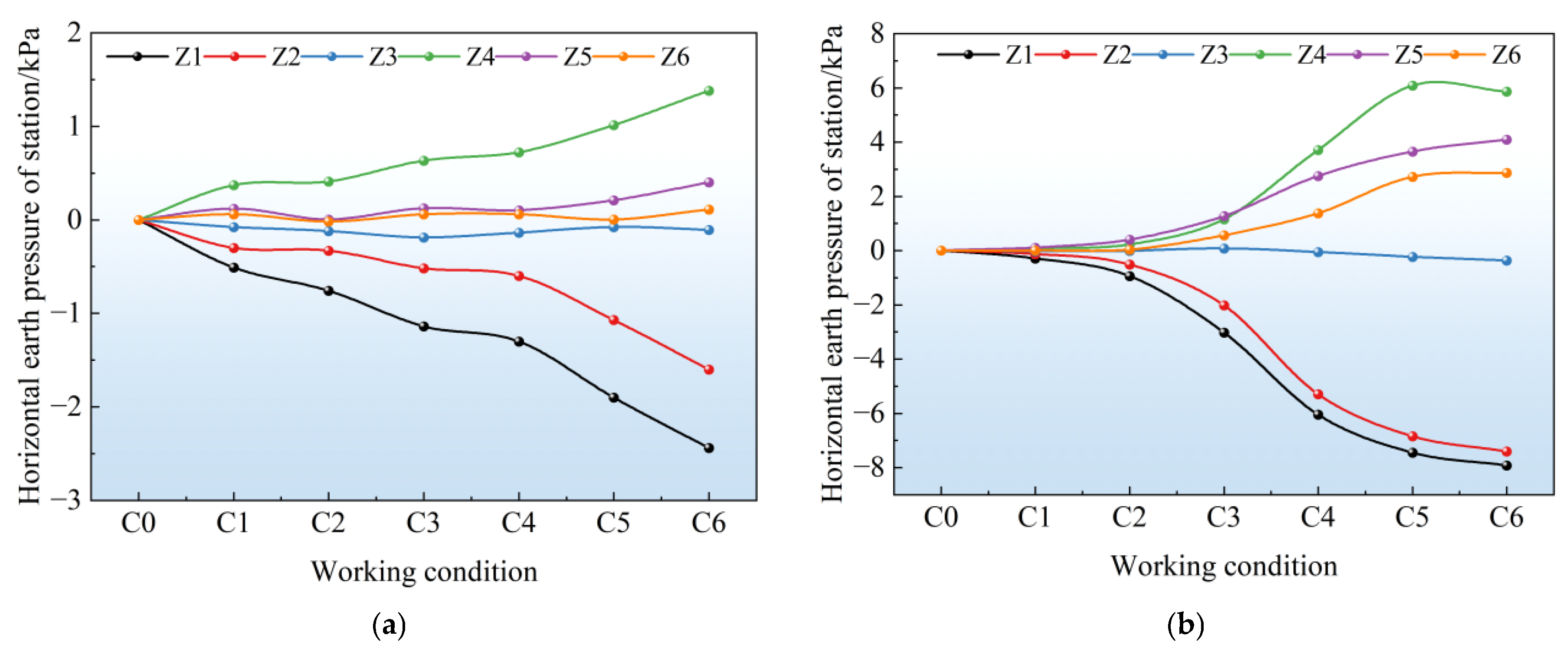| Maximum Value of Station Earth Pressure Change | 2.44 kPa | 7.92 kPa |
