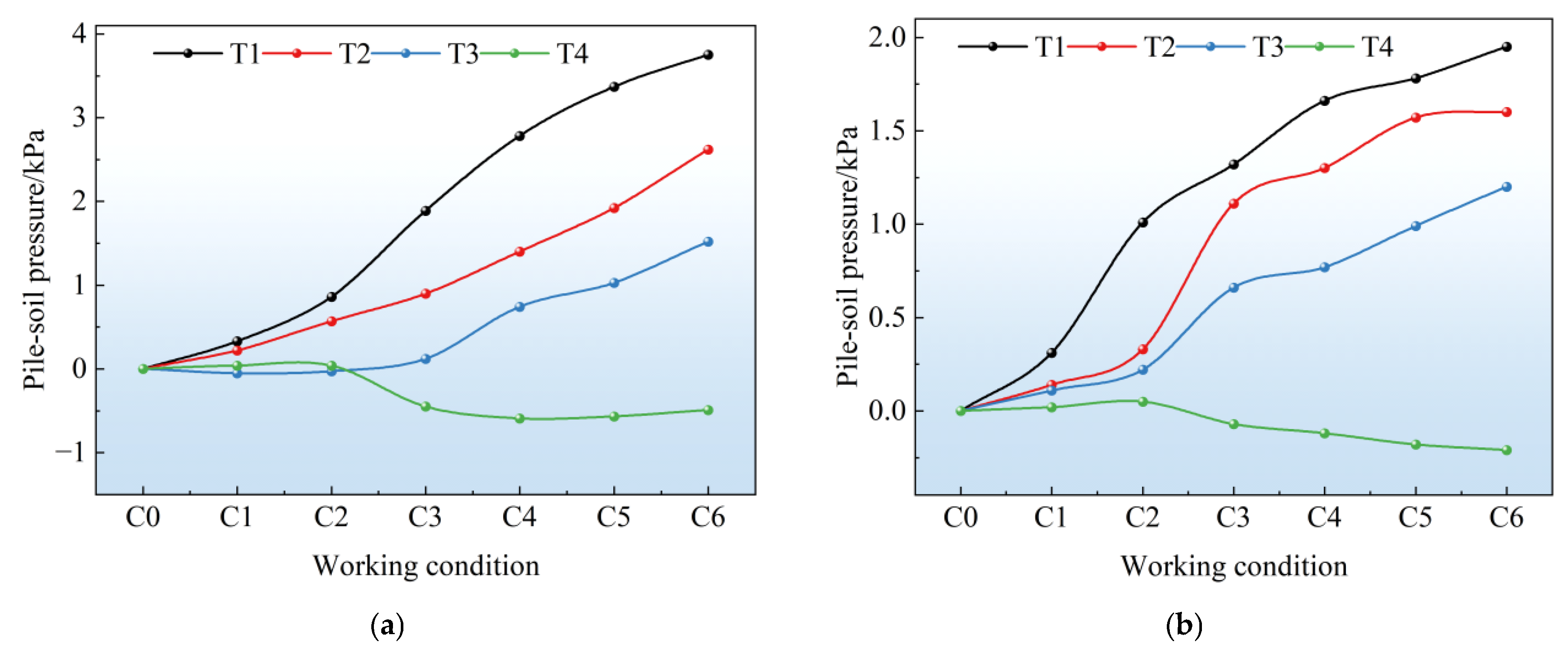 | Maximum Value of Pile Earth Pressure Change | 3.75 kPa | 1.95 kPa |