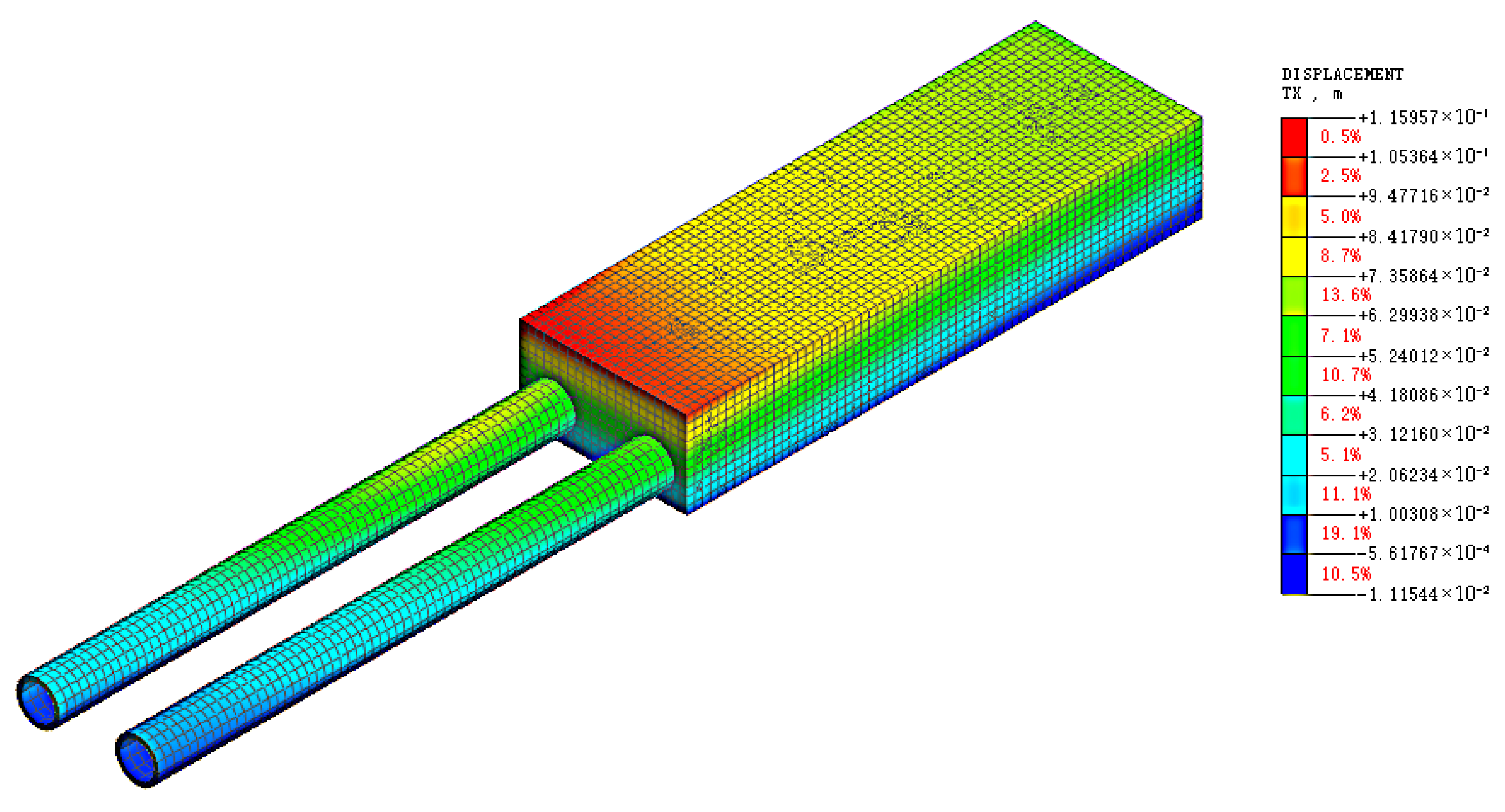 - The pile-anchor support structure withstood greater earth pressure than the double-row pile support structure. Withstanding relatively high earth pressure within a reasonable range could effectively reduce the adverse effects caused by soil displacement, exhibiting better control over the deformation of surrounding soil and less disturbance to adjacent existing subway structures. In contrast, the maximum positive and negative bending moments of the tunnel under the double-row pile support structure were both greater than those under the pile-anchor support structure. In terms of tunnel longitudinal deformation control, the pile-anchor support structure was superior, and the deformation of the left tunnel was greater than that of the right tunnel. The tunnel as a whole exhibited horizontal deformation toward the foundation pit excavation side and upward heave deformation.