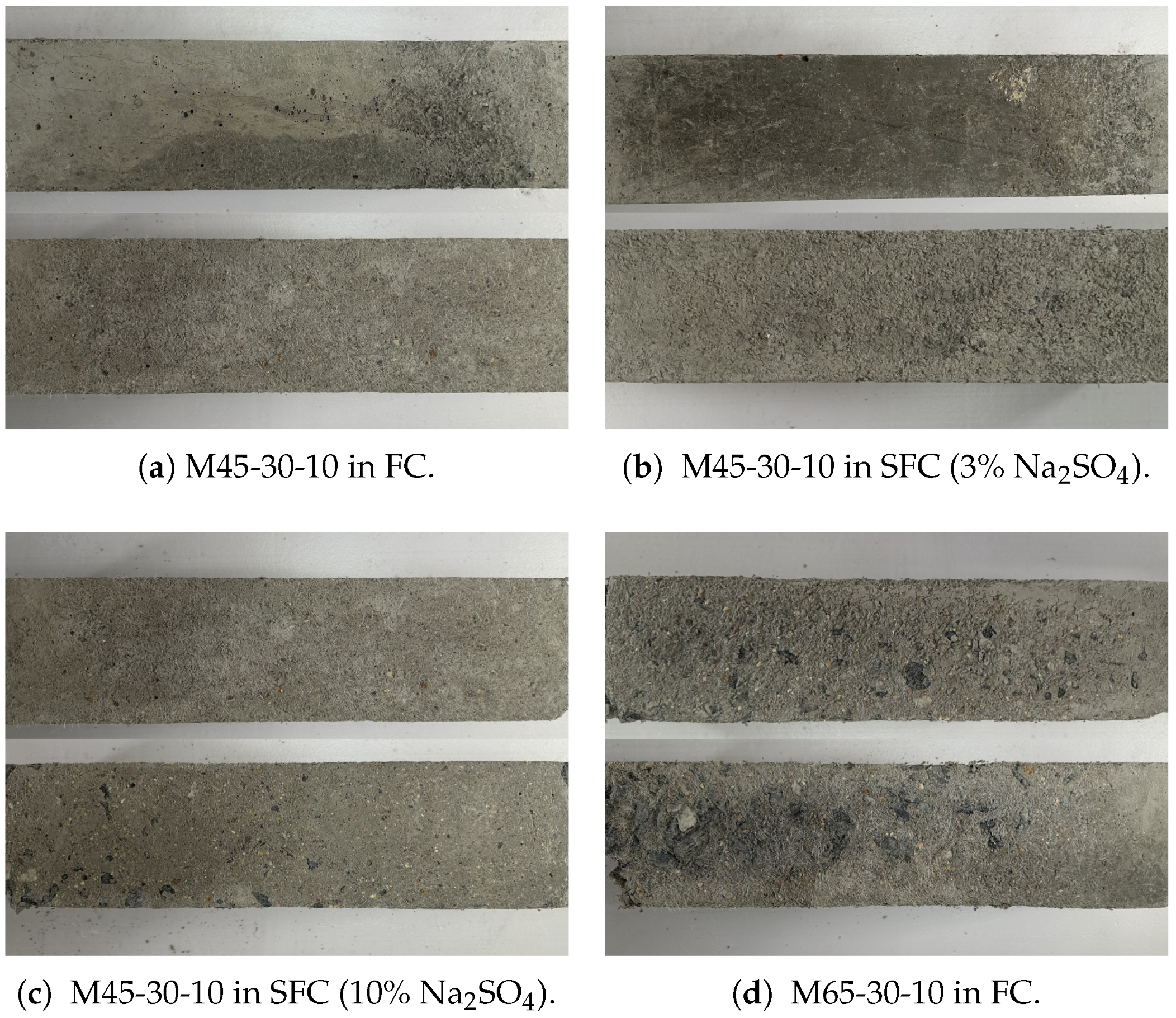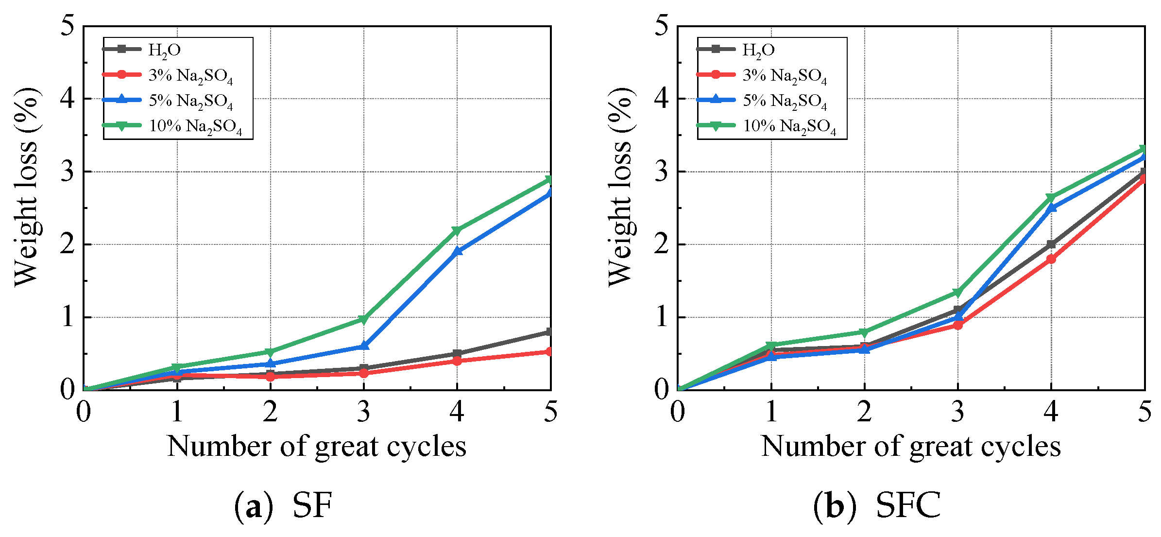 | 3 | sulfate and freeze–thaw | SF | (1) Na2SO4 solution immersion for 4 days (2) Freeze–thaw cycles 50 times (3) Take steps 1–2 as a great cycle and repeat it |