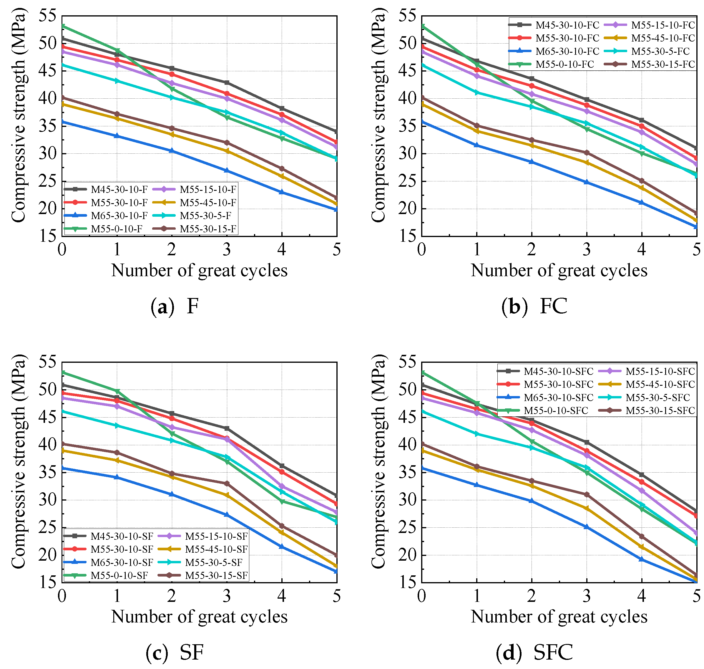 | 4 | sulfate and freeze–thaw and carbonation | SFC | (1) Na2SO4 solution immersion for 4 days (2) Freeze–thaw cycles 50 times (3) Oven-dried at 60 °C for 2 days (4) Accelerated carbonation for 3 days (5) Take steps 1–4 as a great cycle and repeat it |